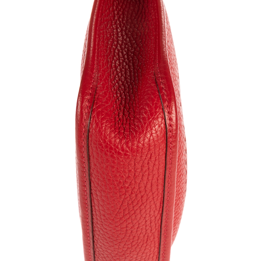 A vintage Hermes red calf leather Evelyne bag with a certificate of authenticity, Approx 18cm height, 17m width.