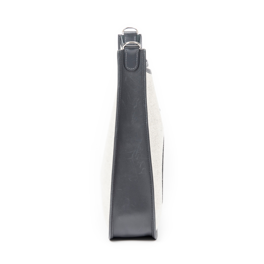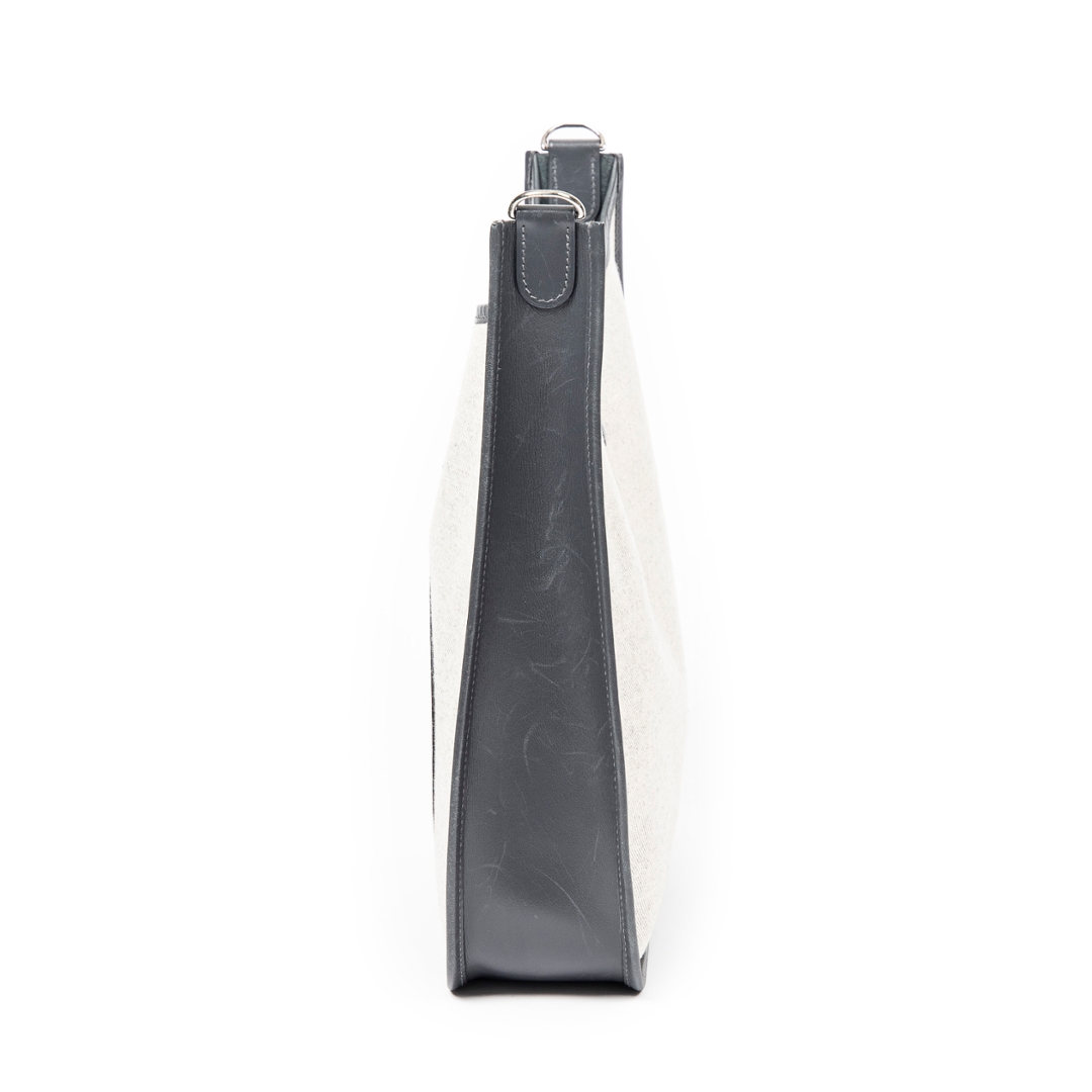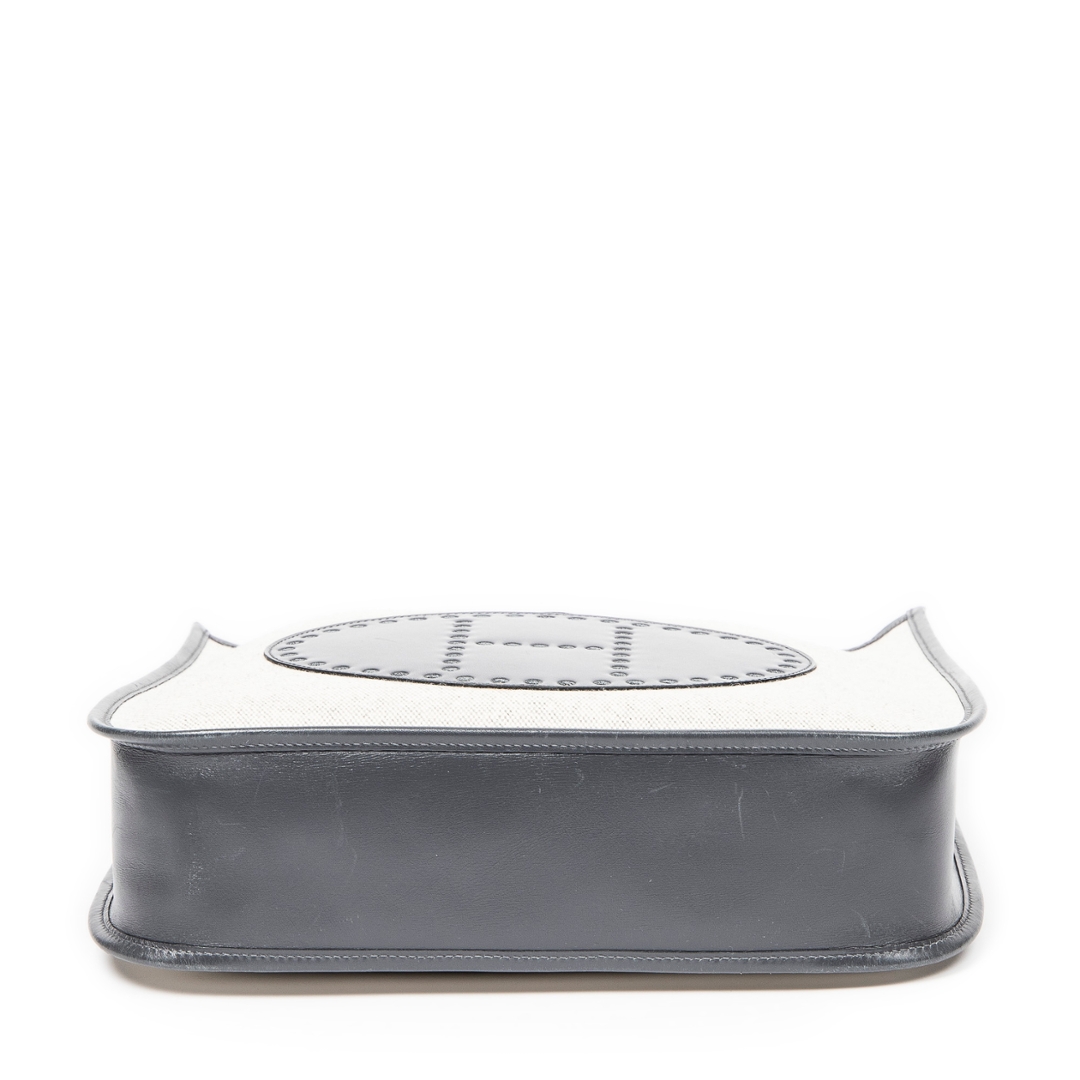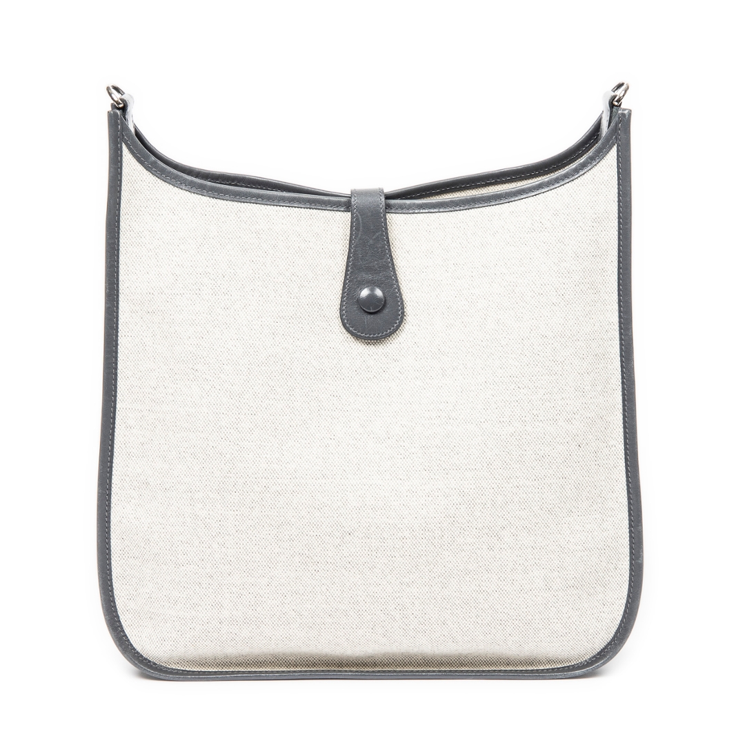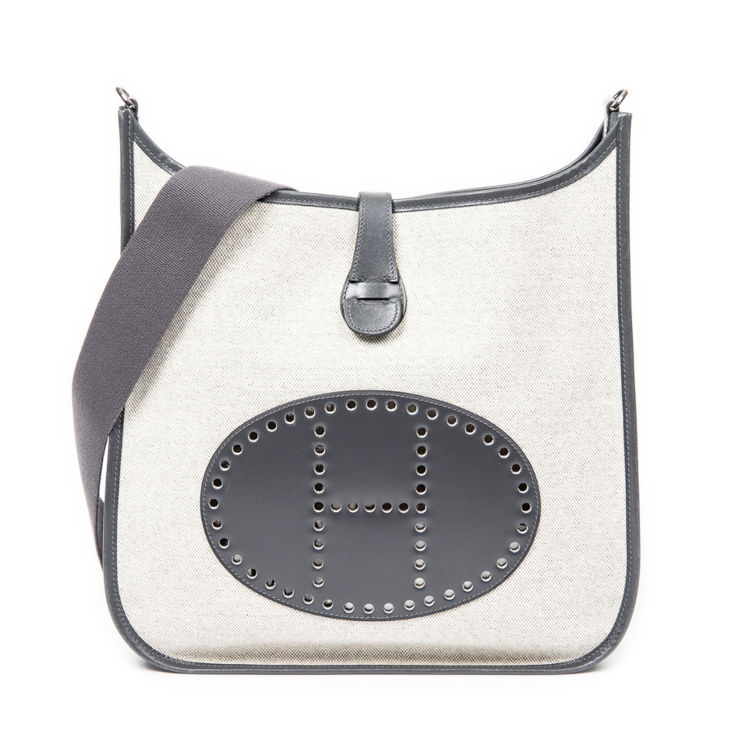 A vintage Hermes beige/grey canvas Evelyne I bag with a certificate of authenticity, Approx 31cm height, 33cm width.