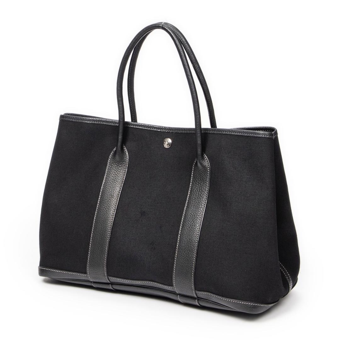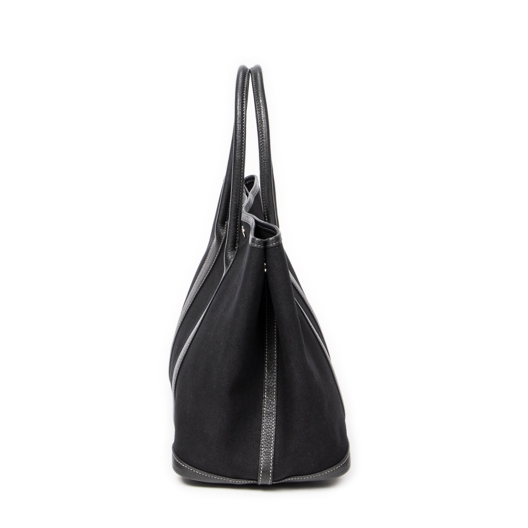 A vintage Hermes black canvas Garden Party bag with a certificate of authenticity, Approx 25cm height, 36cm width.