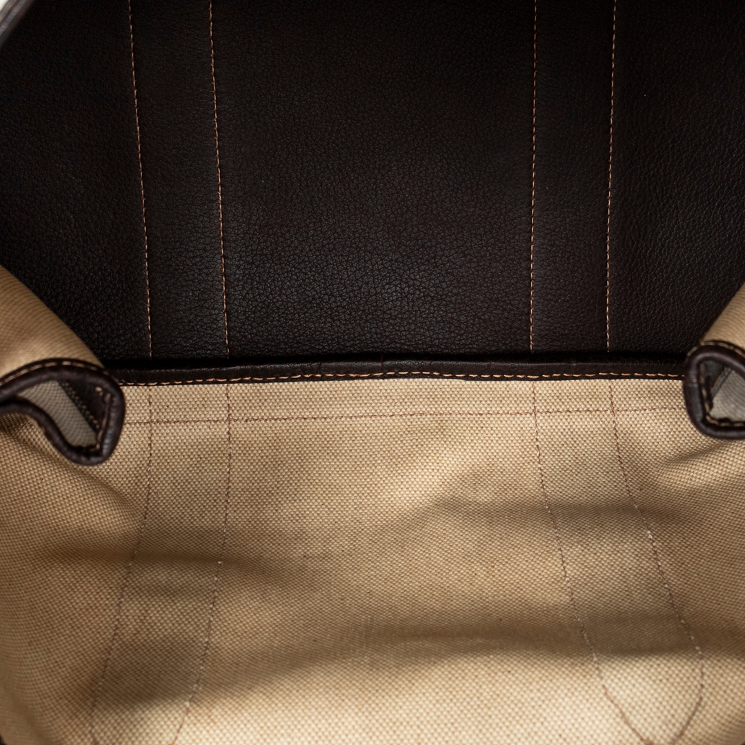 The spacious interior provides ample room for daily essentials, making it well suited for work, travel, or everyday use. Durable canvas construction enhances practicality, while the structured base allows the bag to maintain its shape during use, reinforcing its reliability as a functional carryall.