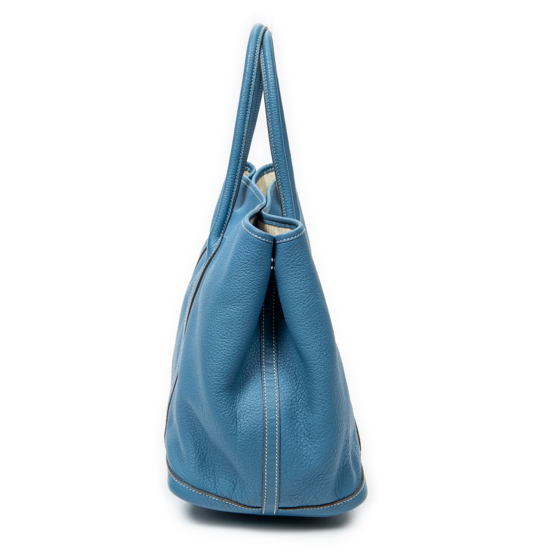A vintage Hermes blue jean calf leather Garden Party bag with a certificate of authenticity, Approx 25cm height, 36cm width.