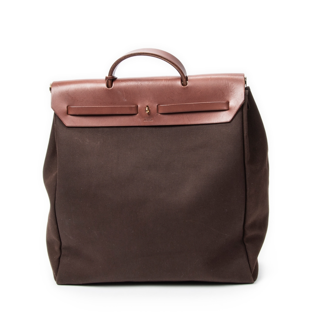 A vintage Hermes brown canvas Herbag 2in1 bag with a certificate of authenticity, Approx 33cm height, 38cm width.