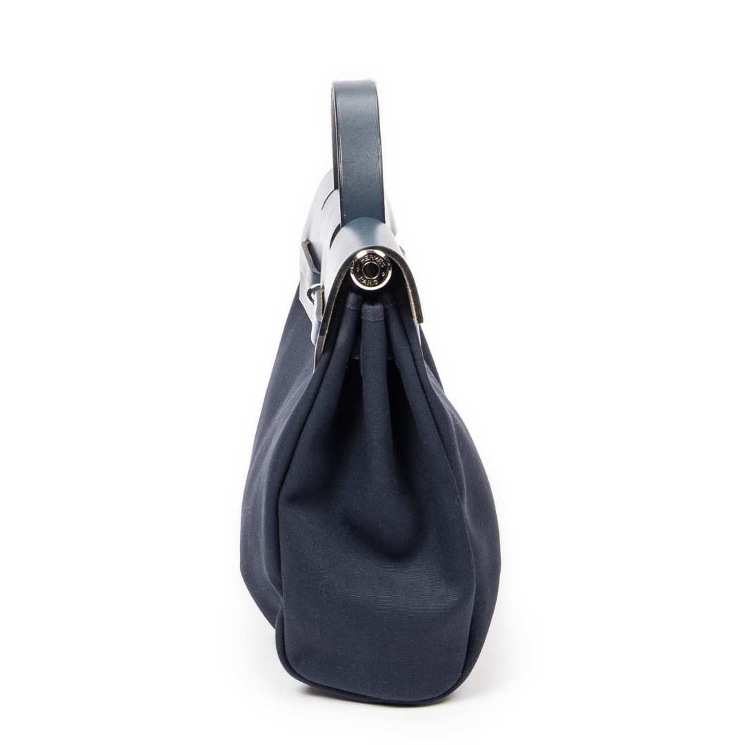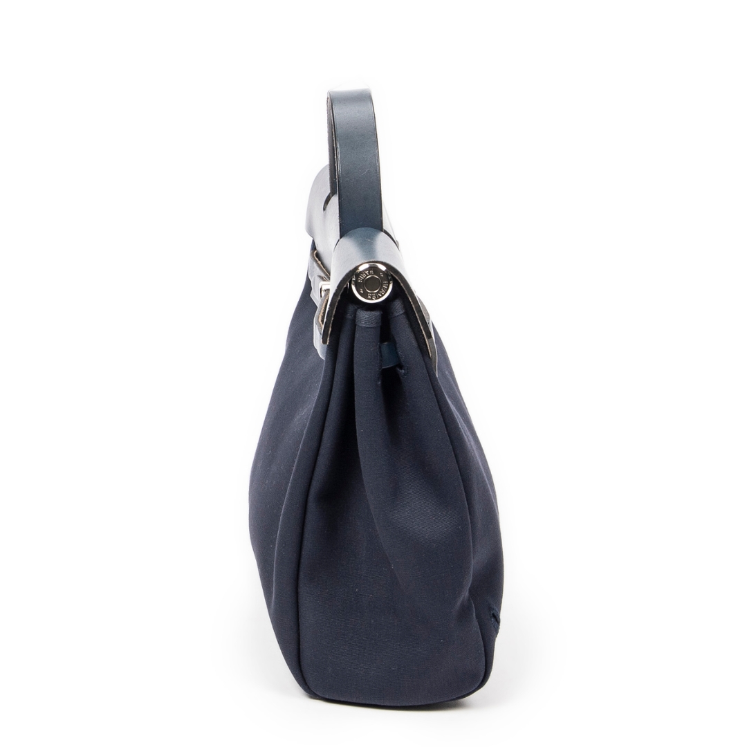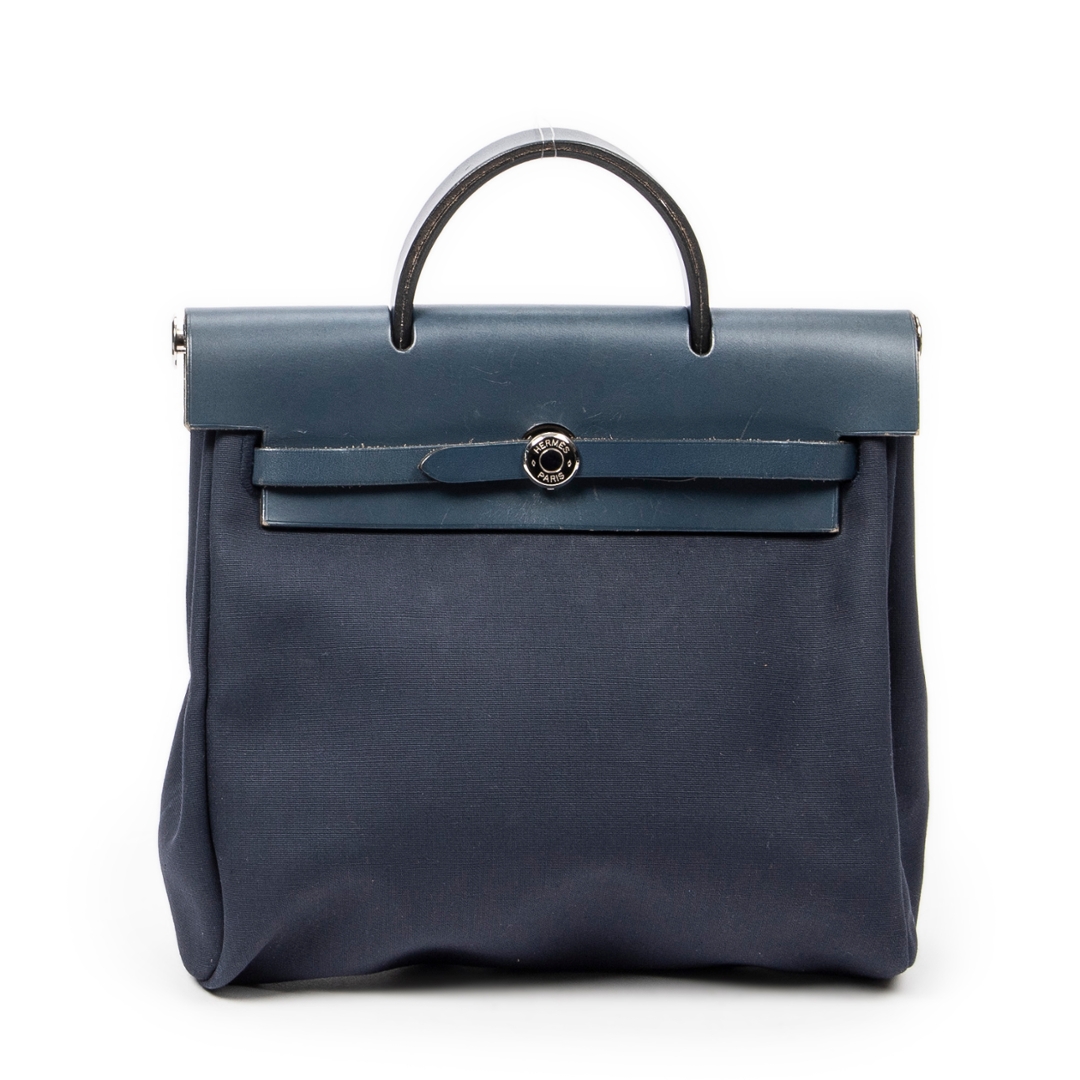 A vintage Hermès Herbag à Dos crafted in deep navy canvas, complemented by matching leather trim and top handle. This distinctive design offers a refined take on the classic Herbag silhouette, featuring the signature flap closure secured with the iconic Clou de Selle fastening. The rich, understated colour palette enhances its versatility, making it a sophisticated choice for both everyday use and more elevated styling.