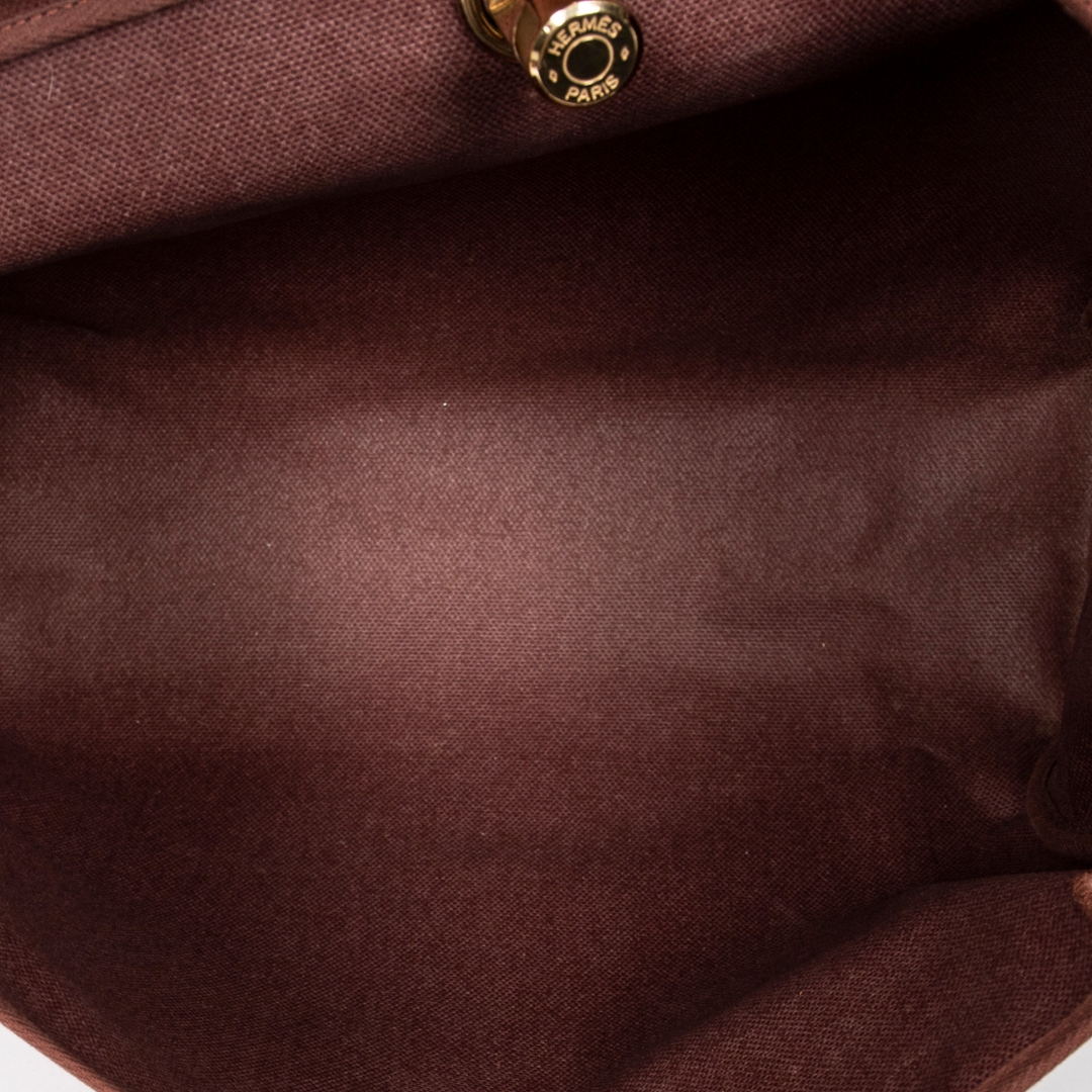 A vintage Hermès Herbag crafted in durable canvas with rich brown leather accents, showcasing the Maison’s signature blend of practicality and refined design. This classic piece features the structured silhouette and iconic flap closure secured with the recognisable Clou de Selle fastening, offering a timeless aesthetic that transitions effortlessly from casual to more polished settings.