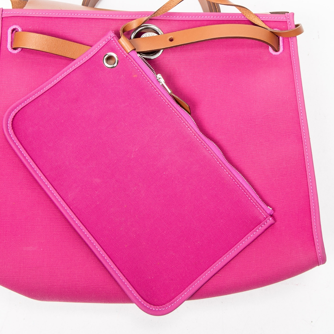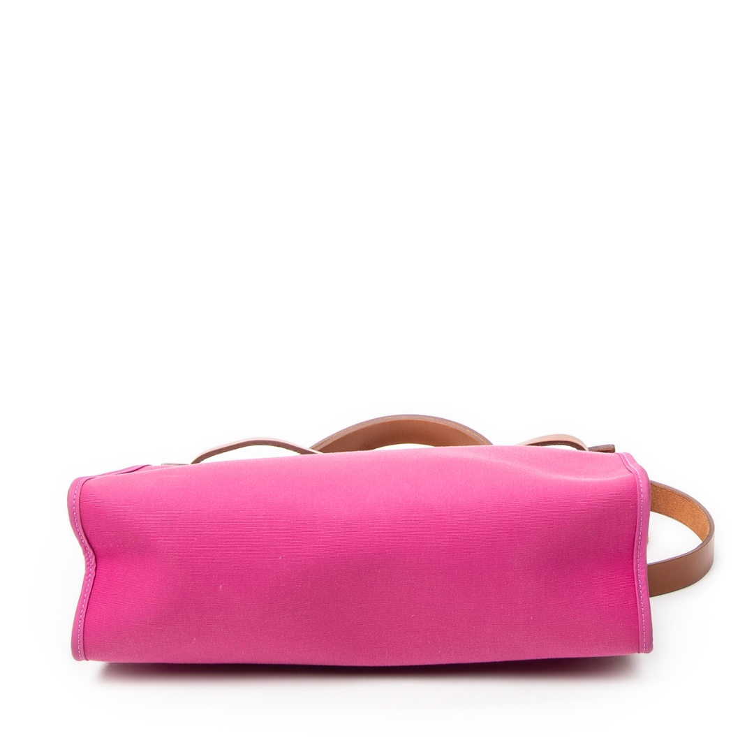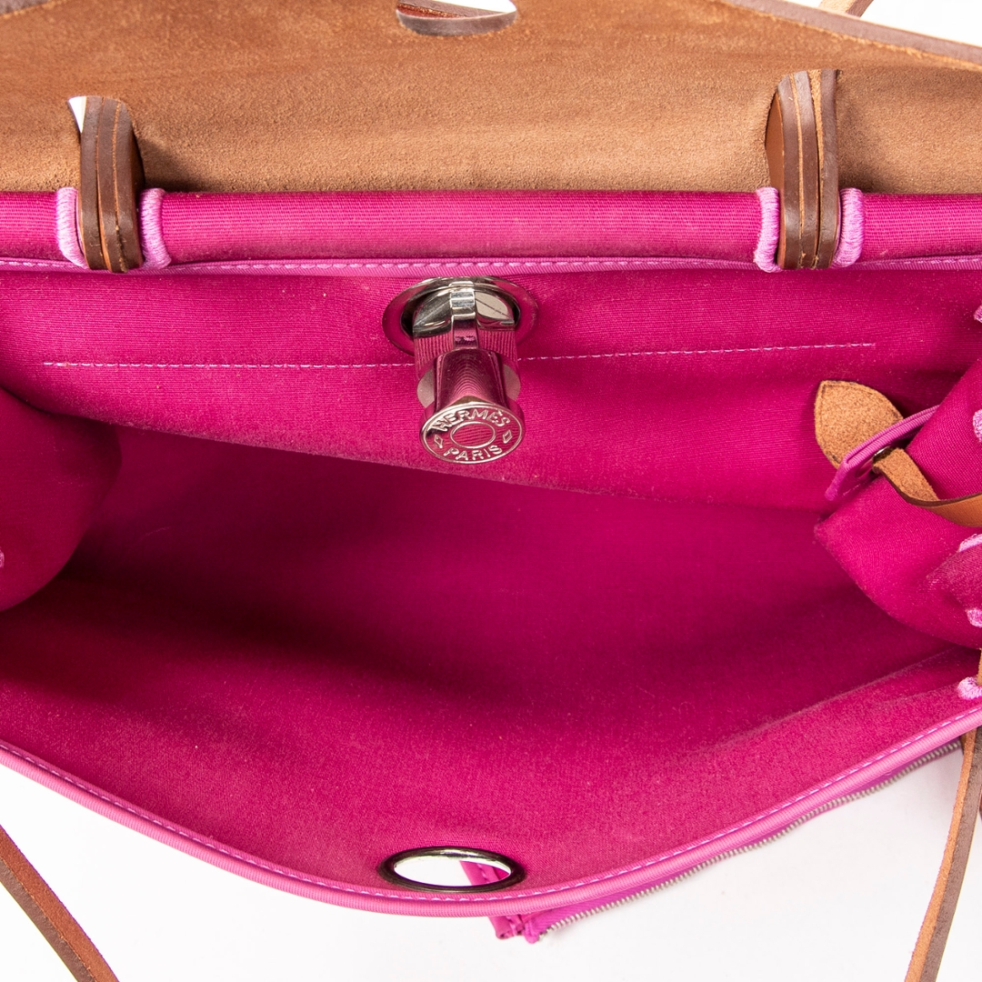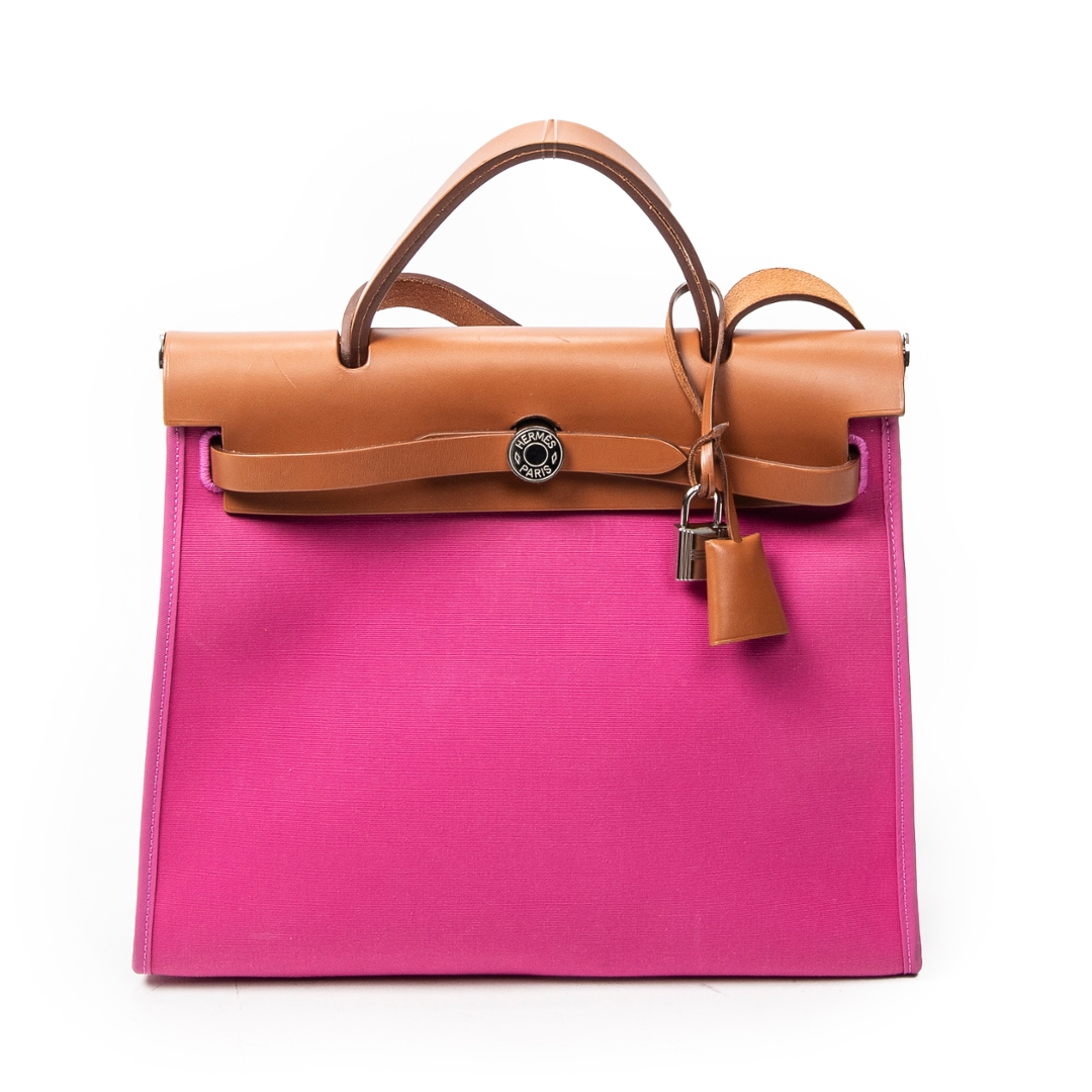 A vintage Hermès rose purple canvas Herbag Zip bag, a striking and contemporary take on one of the house’s most recognisable designs. Crafted from vibrant rose purple canvas with smooth tan calf leather detailing, this piece combines bold colour with classic Hermès structure, finished with the signature Clou de Selle closure and refined top handle.