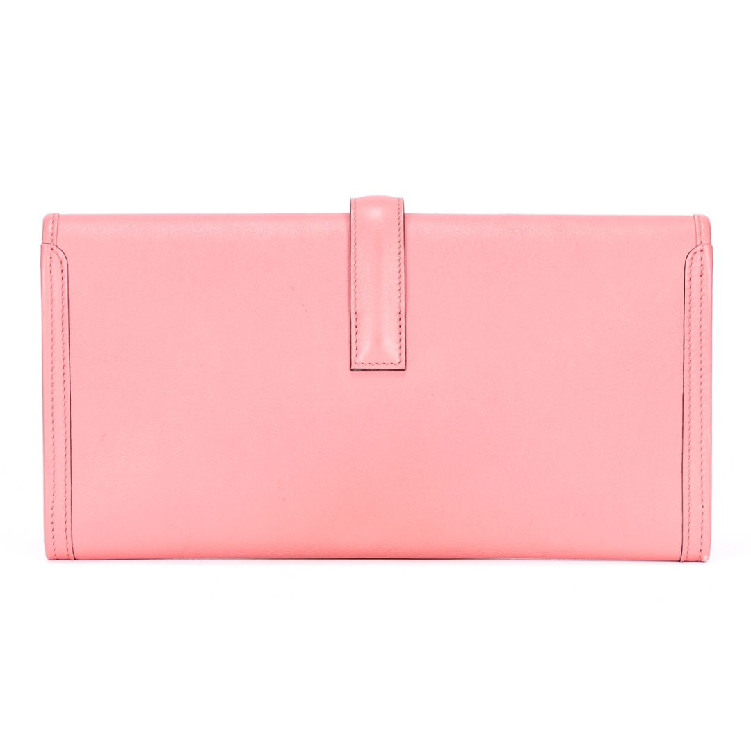A vintage Hermes rose calf leather Jige Elan bag with a certificate of authenticity, Approx 16cm height, 29cm width.