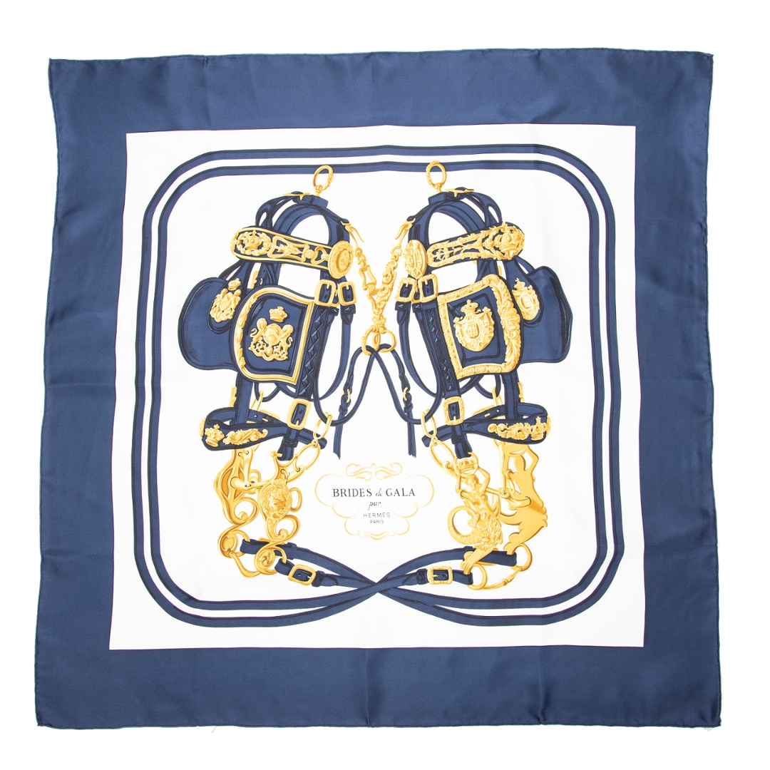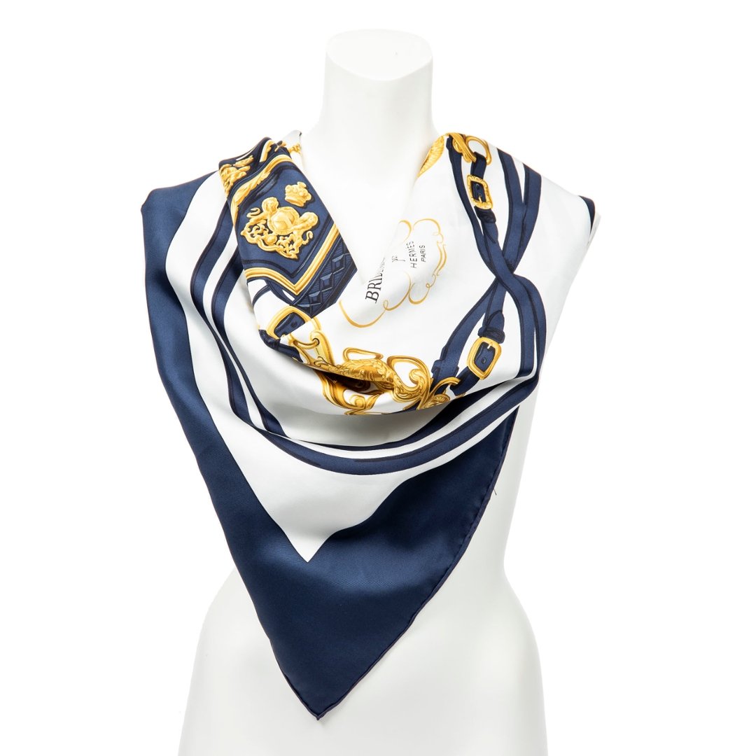 A vintage Hermes Scarf with a certificate of authenticity. Approximately 90cm height, 90cm width.