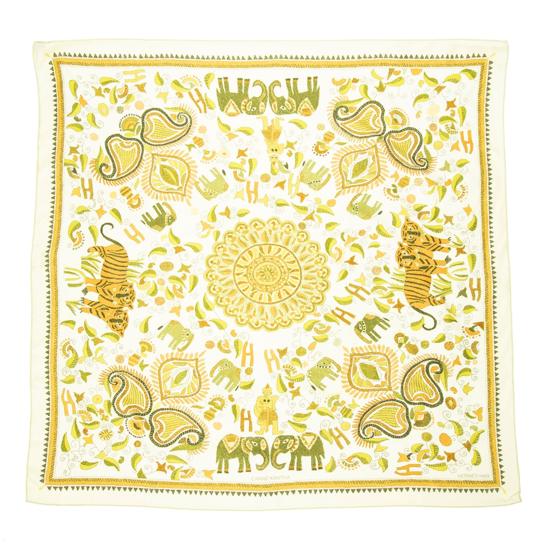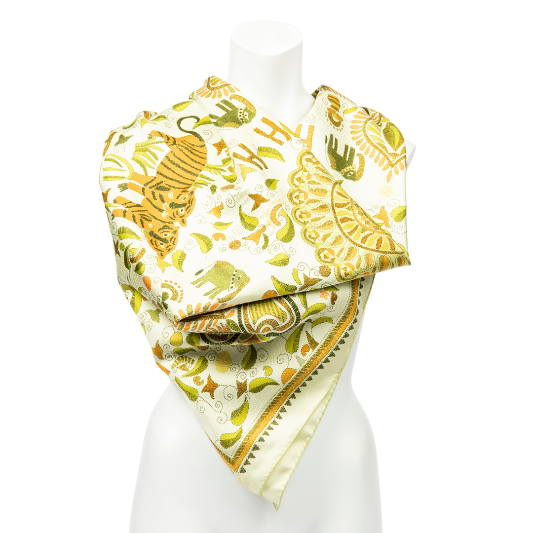 A vintage Hermes Scarf with a certificate of authenticity. Approximtely 90cm height, 90cm width.
