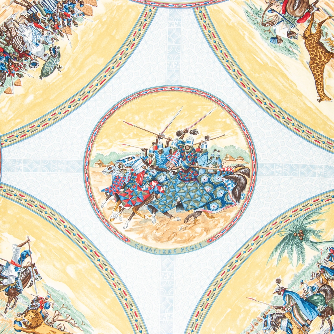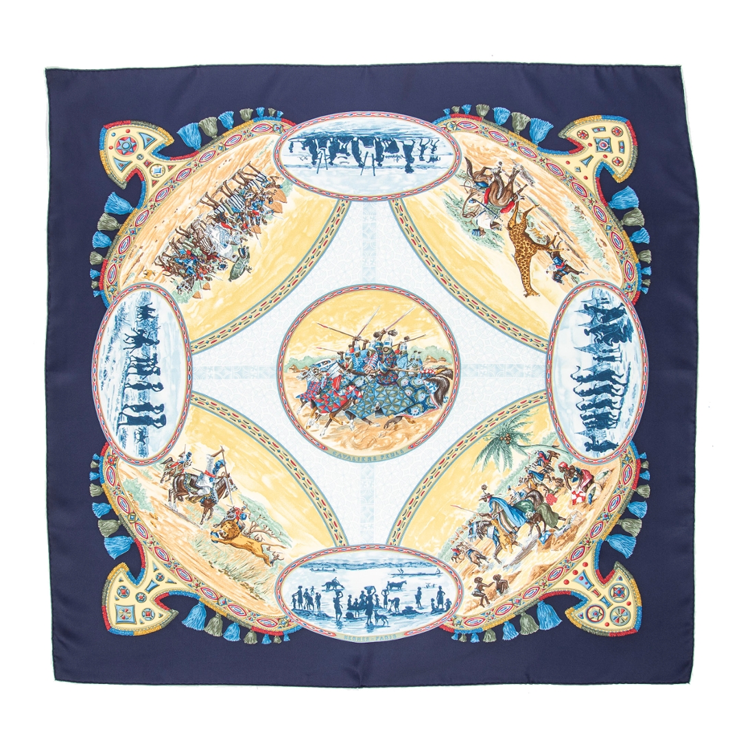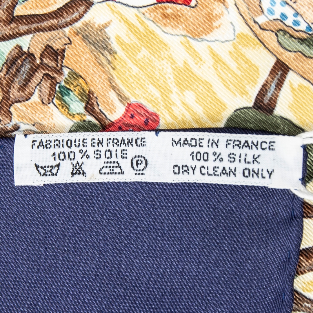A vintage Hermes Scarf with a certificate of authenticity. Approximately 90cm height, 90cm width.