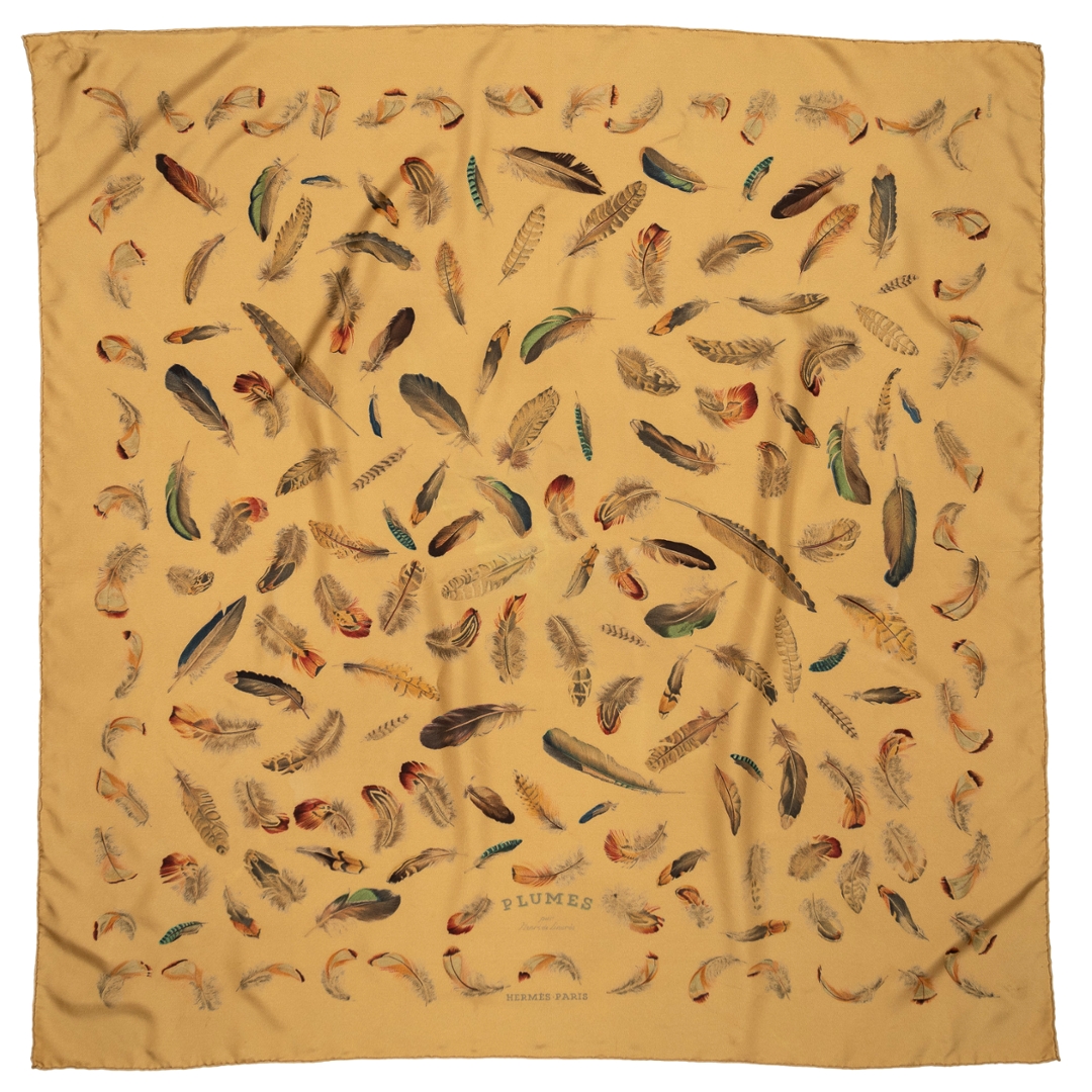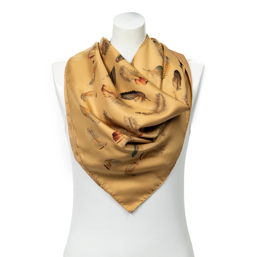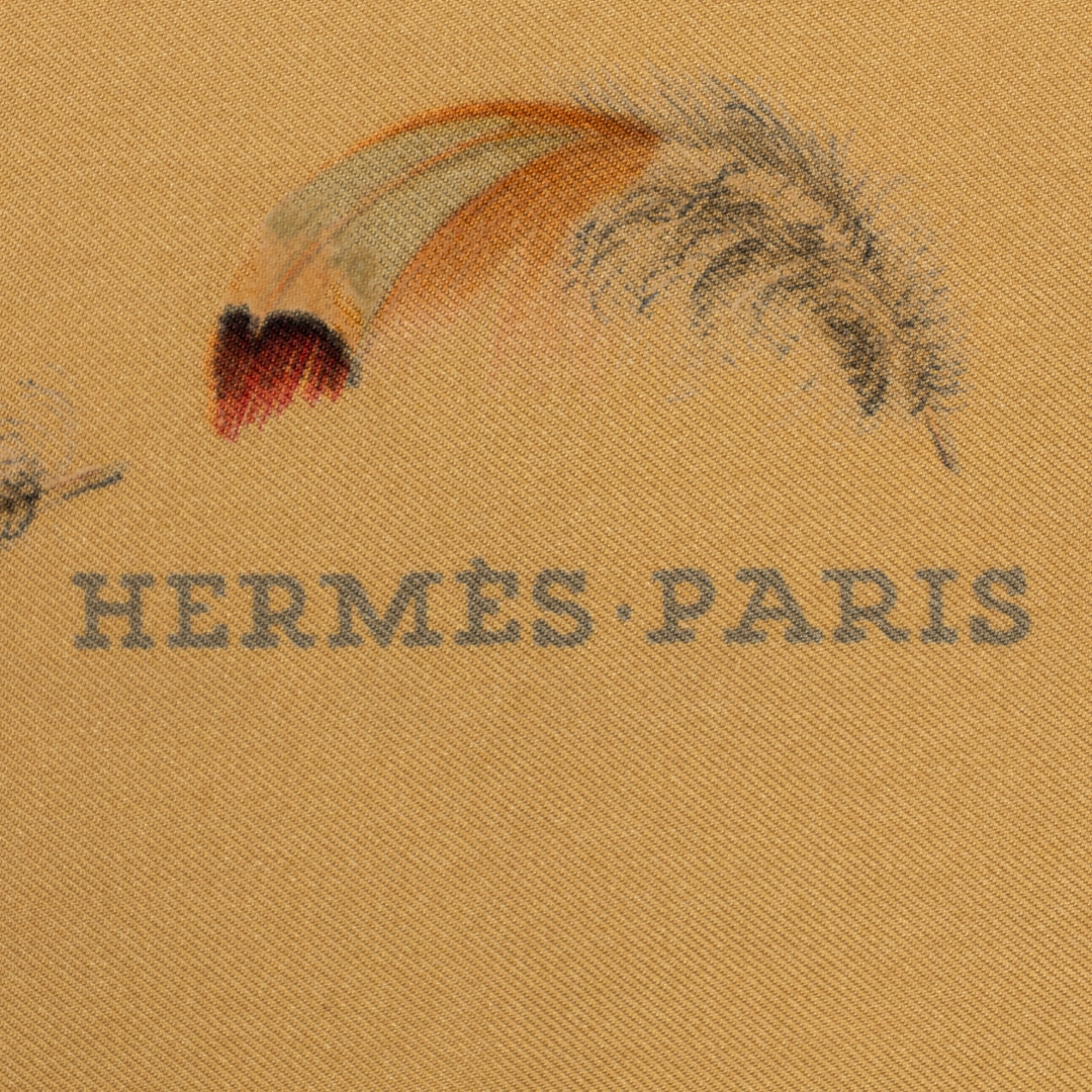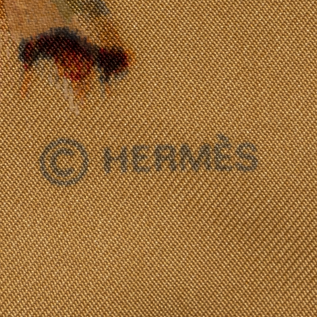 A vintage Hermes tan silk Scarf with a certificate of authenticity. Approximately 90cm height, 90cm width.