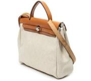 A vintage Hermes beige/red coated canvas Tsako bag with a certificate of authenticity, Approx 21cm height, 31cm width.