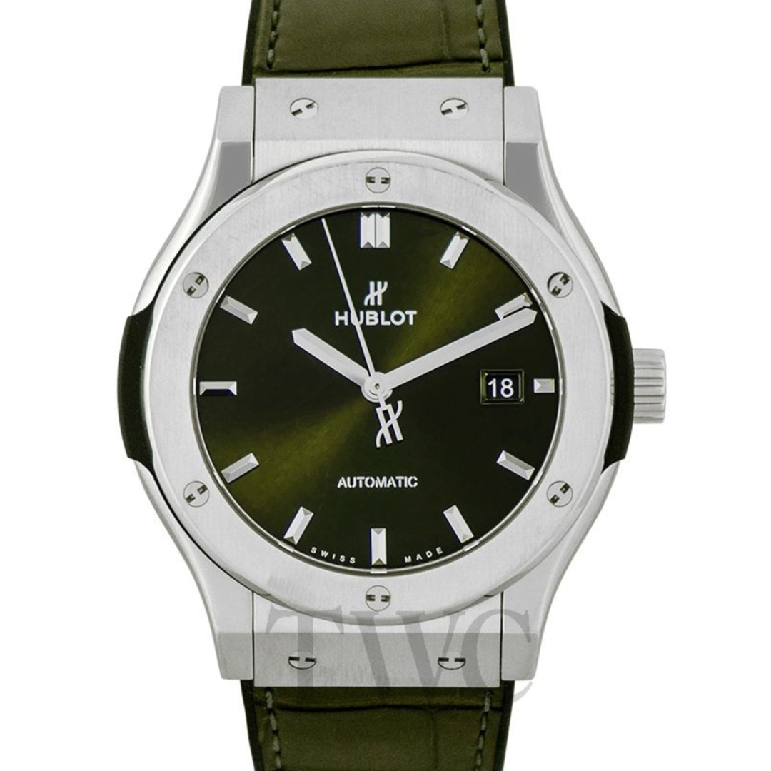 - > Hublot Classic Fusion Titanium Green Watch.