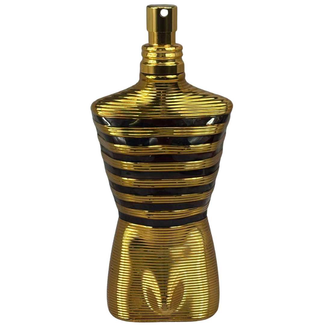 instantly recognisable male torso bottle finished in radiant gold,