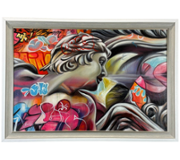 The black and silver frame enhances the painting's dramatic and contemporary feel, providing a sleek contrast that highlights the bold and dynamic composition. Valued at €1800, "Star Wars" stands out for its inventive mash-up of two beloved universes, making it a captivating and conversation-worthy addition to any art collection. This piece exemplifies Fournier’s flair for combining pop culture references with a fresh artistic perspective.