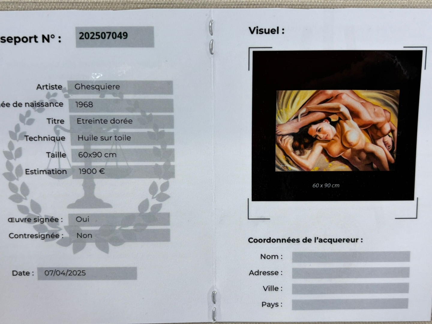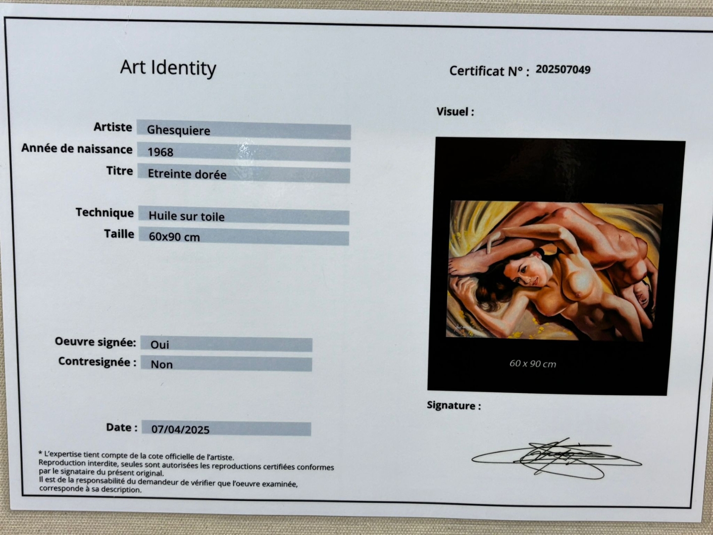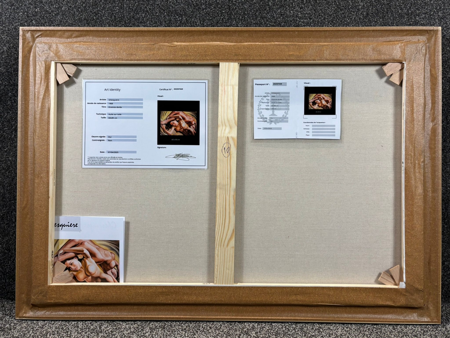 Presented in a refined black frame and valued at €1900, Étreinte Dorée is both striking and sophisticated — a celebration of sensuality, emotion, and artistic finesse that evokes classical influences while remaining deeply contemporary.