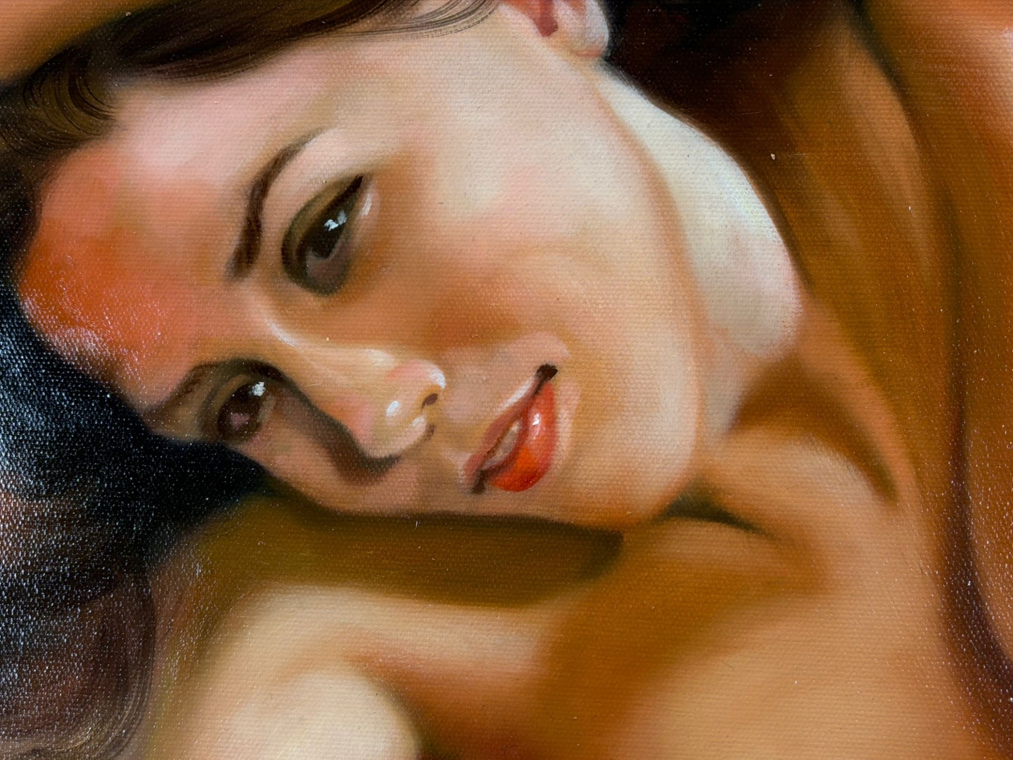 An original oil painting by the artist Ghesquiere, titled Étreinte Dorée, captures the timeless beauty and intimacy of the human form with exquisite realism and emotion. Measuring 60cm x 90cm, the composition portrays two intertwined figures in a graceful embrace, their forms bathed in warm, golden light that enhances the painting’s elegance and allure.
