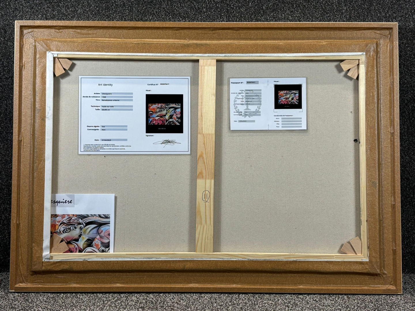 Presented in a refined white frame and valued at €1900, Renaissance Urbaine is a captivating work that bridges eras — a stunning statement of creativity, culture, and reinvention.