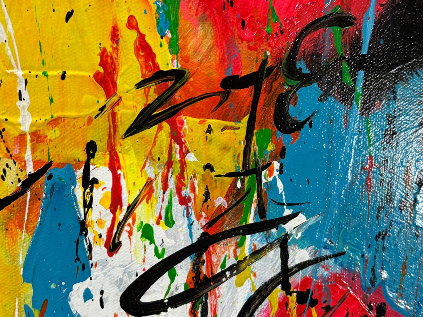 Turban’s striking contrast between the monochrome figures and the energetic bursts of colour creates a powerful visual balance — the family stands as an anchor of warmth and stability amid life’s chaos. The expressive splashes of red, yellow, blue, and green convey emotion and optimism, making the piece both visually dynamic and deeply meaningful.