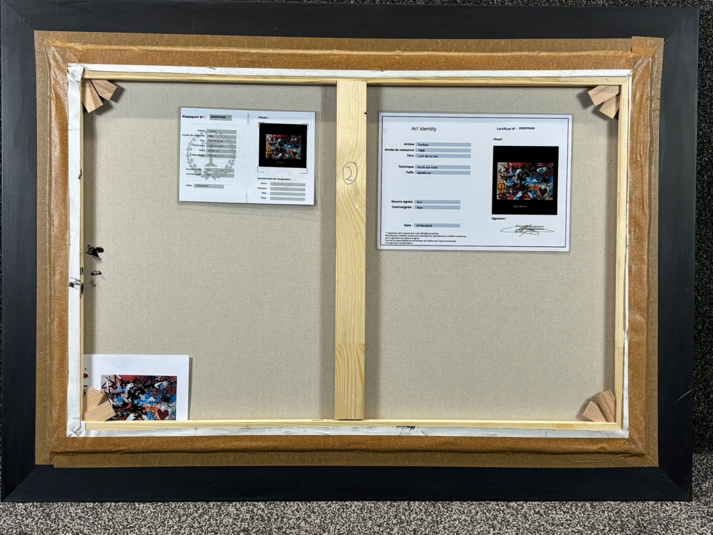 A black framed original oil painting by the artist Turban titled L'art de la Rue.