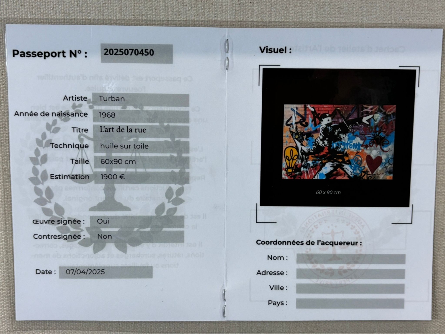 Presented in a sleek black frame and valued at €1900, L’art de la Rue stands as a celebration of modern urban culture — bold, thought-provoking, and unapologetically alive.