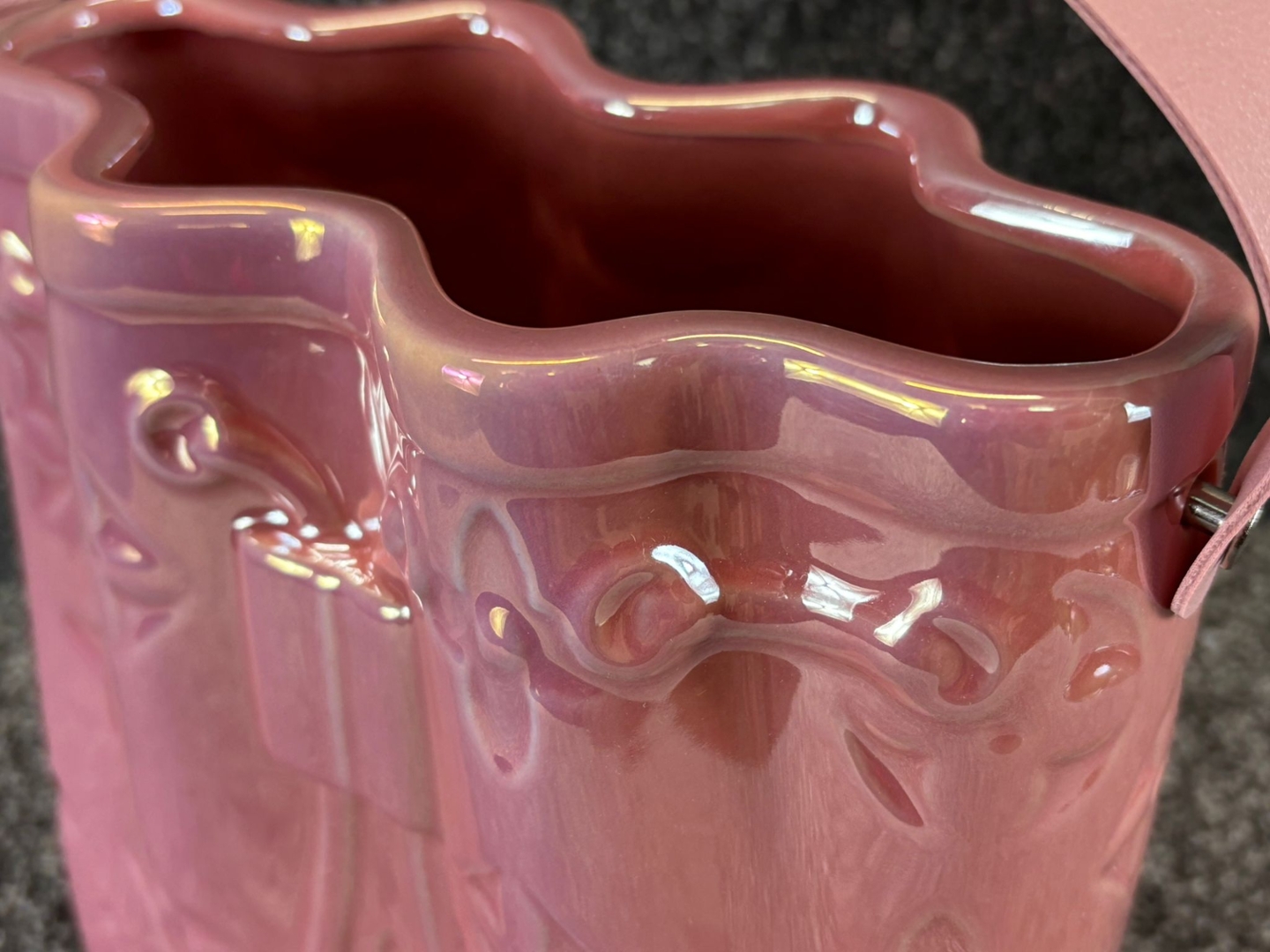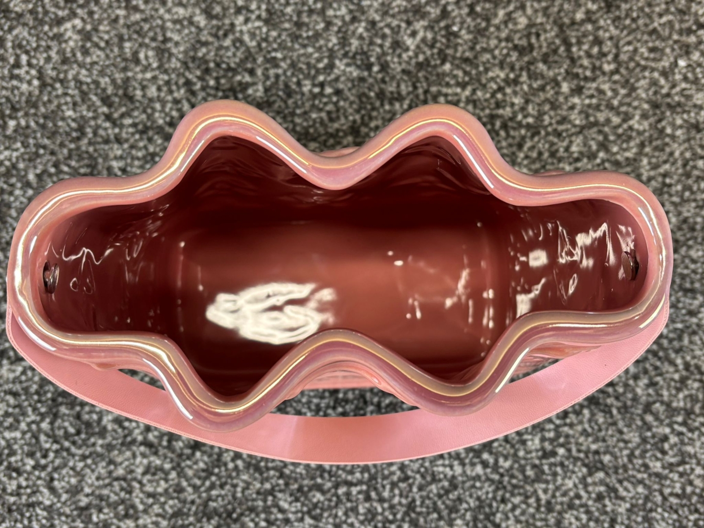 - > Large Pink Ceramic Handbag Vase with Pink Handle