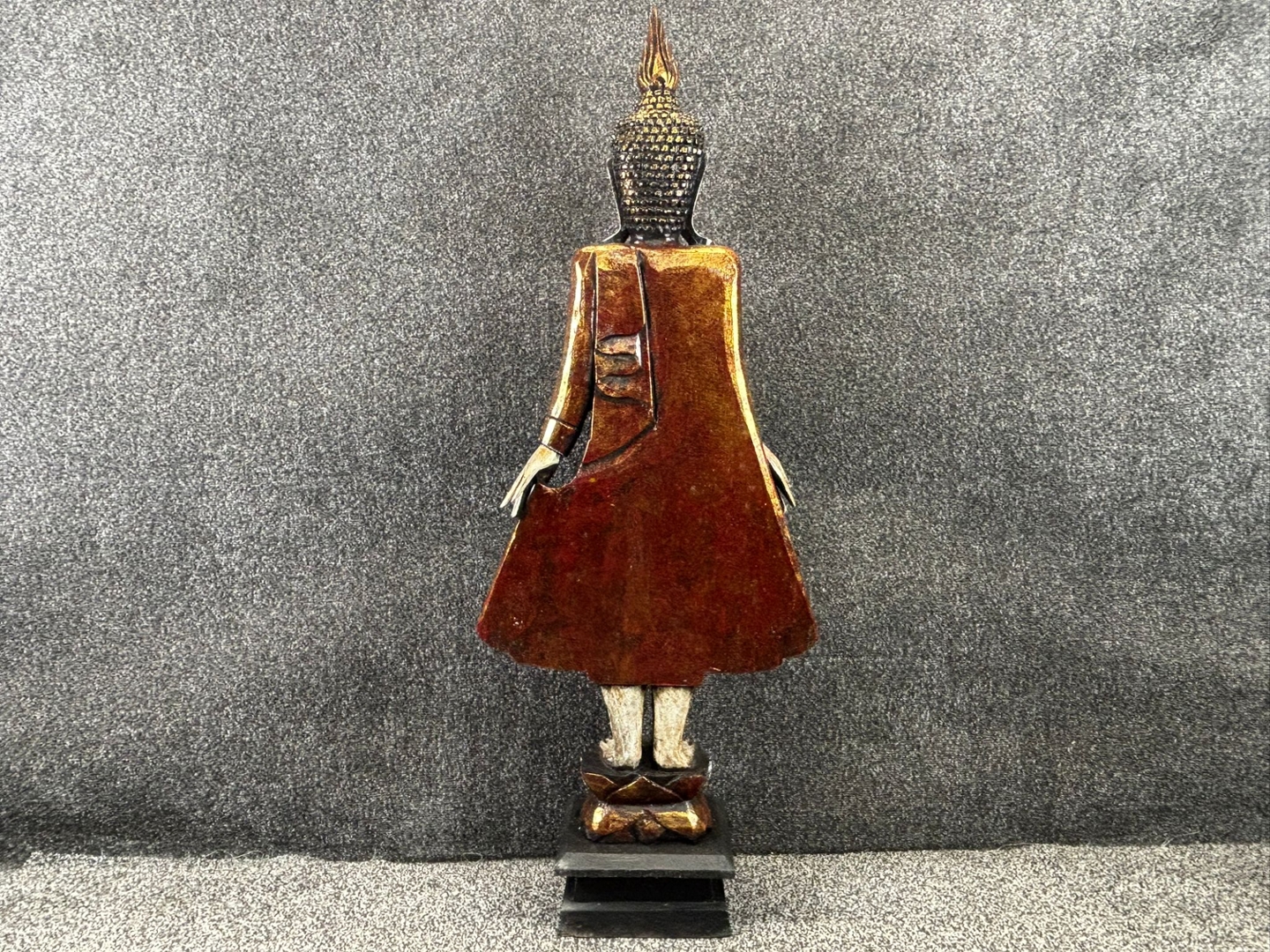 A large sculpture of a Standing Buddha. Approx 114cm height, 42cm width, 20cm depth.