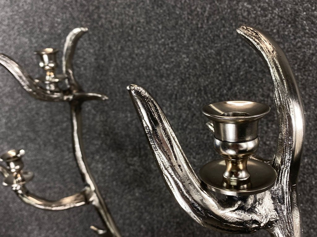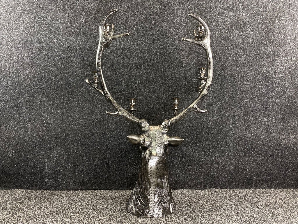 A Large Silver Stag Design Six Candle Holder. Approximately 35" height, 25" width, 13" depth.