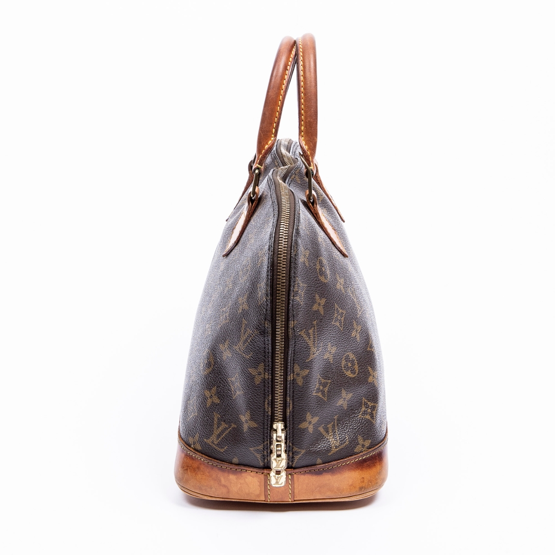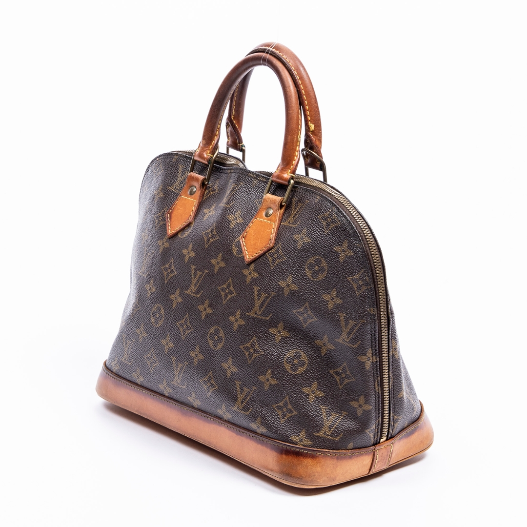 A vintage Louis Vuitton monogram coated canvas Alma bag with a certificate of authenticity. Approximately 23cm height, 29cm width.