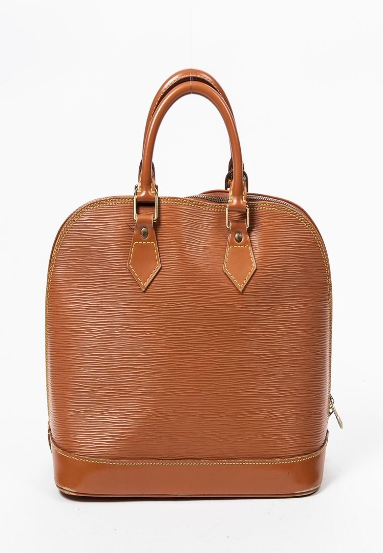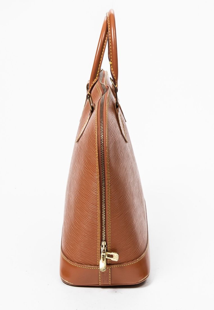A vintage Louis Vuitton tan calf leather Alma bag with a certificate of authenticity, Approximately 23cm height, 30cm width.