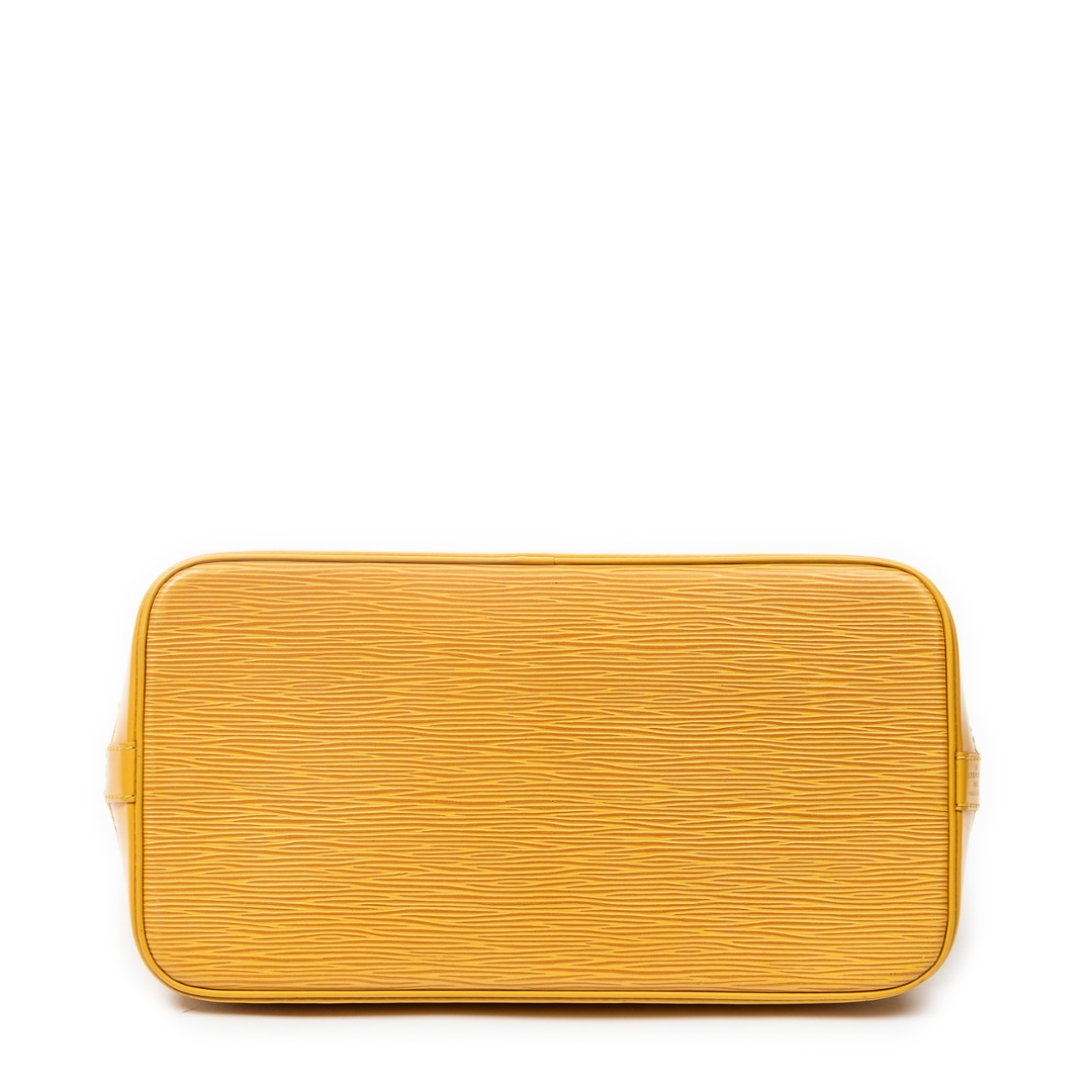 A vintage Louis Vuitton Yellow Calf Leather Alma bag with a certificate of authenticity. Approximately 23cm height, 30cm width.