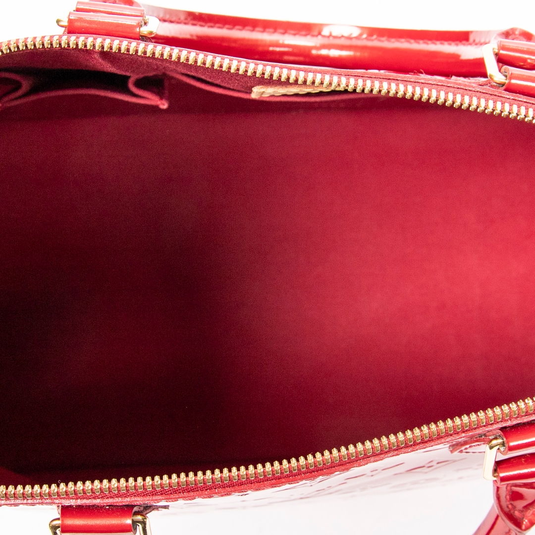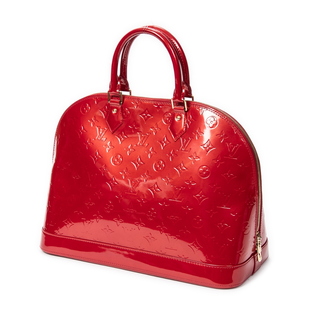 Complete with a certificate of authenticity, this red Alma represents a timeless Louis Vuitton piece with strong visual impact and enduring desirability among collectors and enthusiasts.