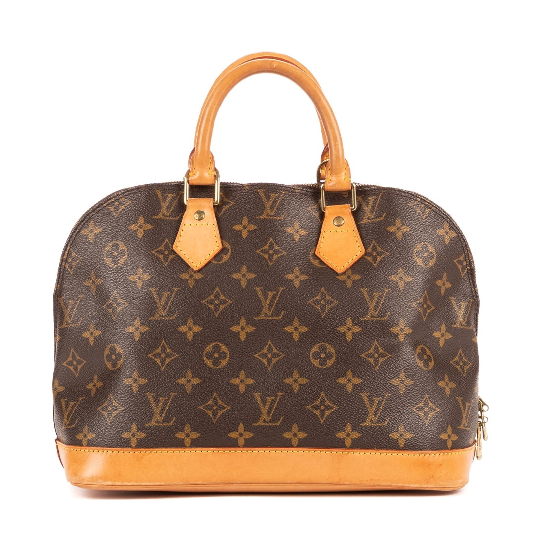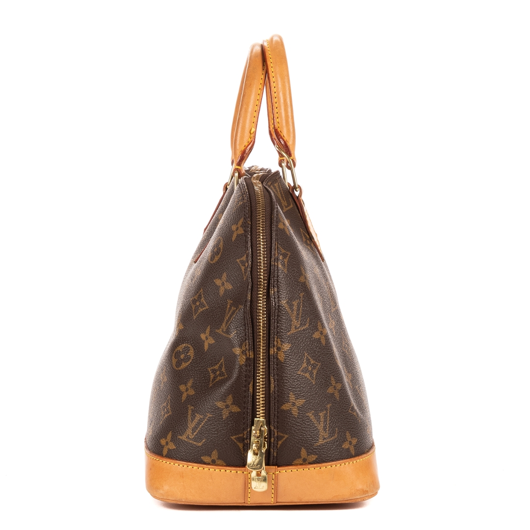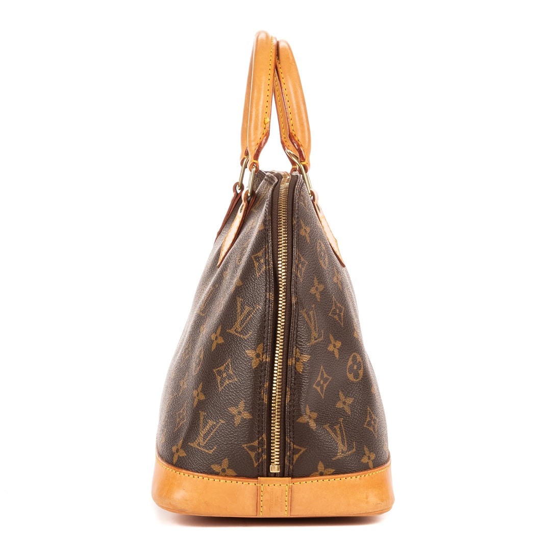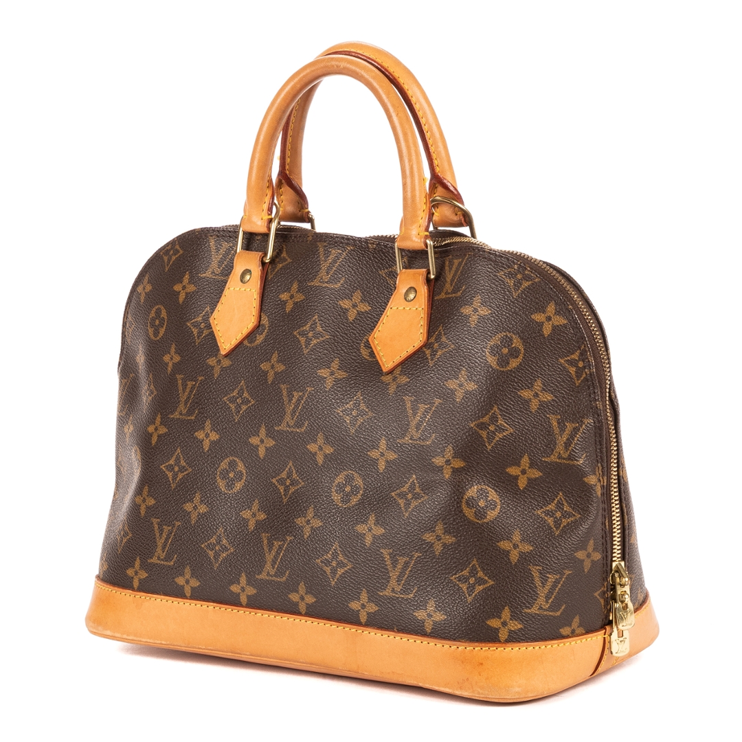 A vintage Louis Vuitton monogram coated canvas Alma bag with a certificate of authenticity. Approximately 25cm height, 30cm width.