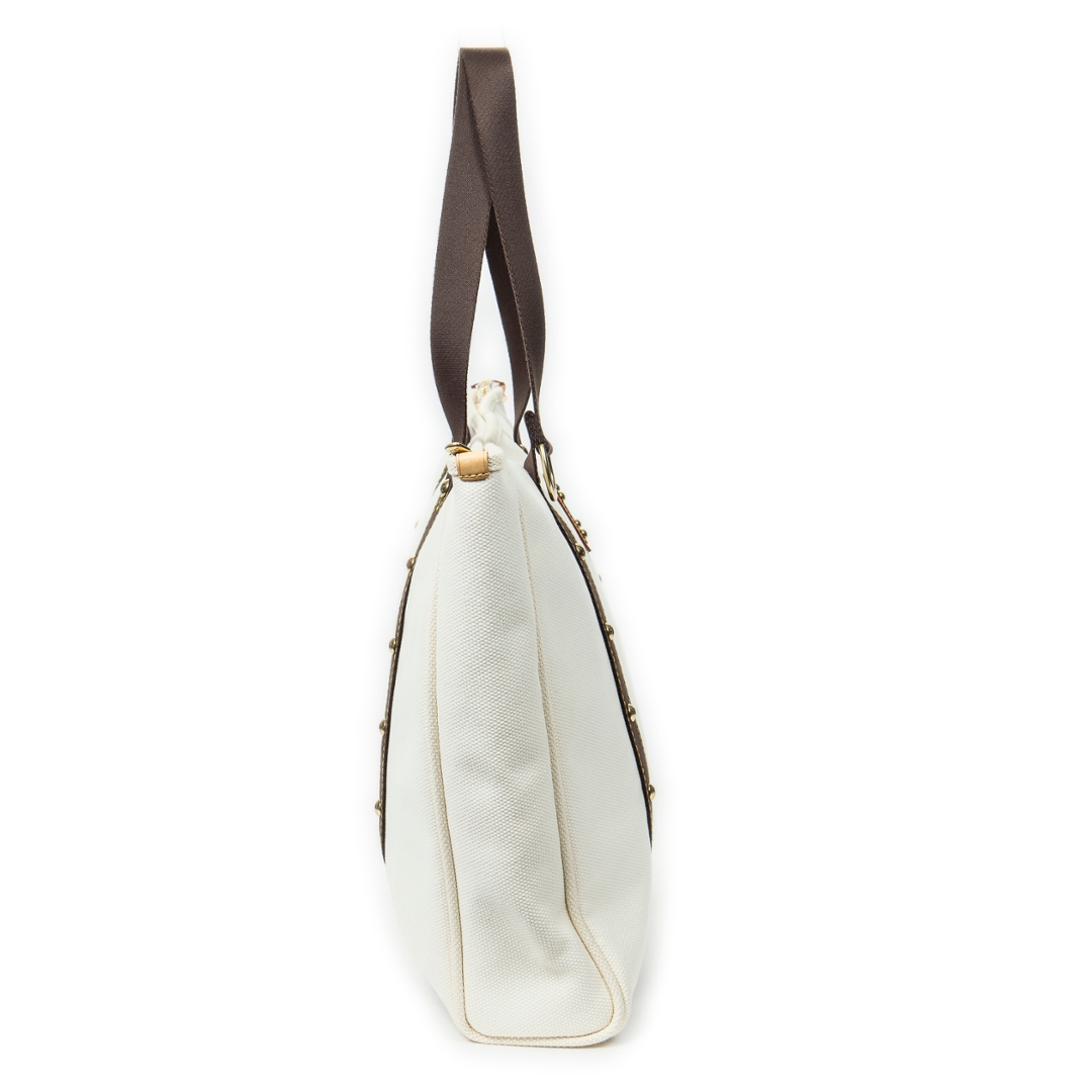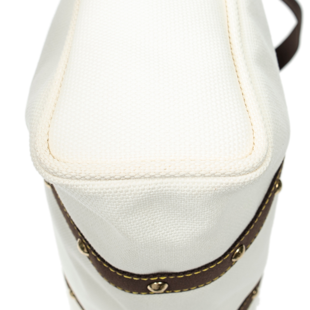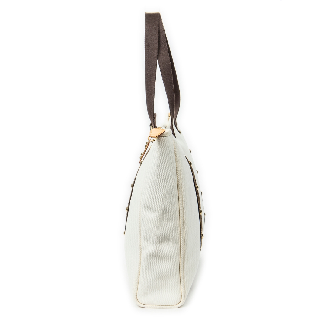 A vintage Louis Vuitton ivory canvas Antigua Cabas bag with a certificate of authenticity. Approximately 36cm height, 41cm width.