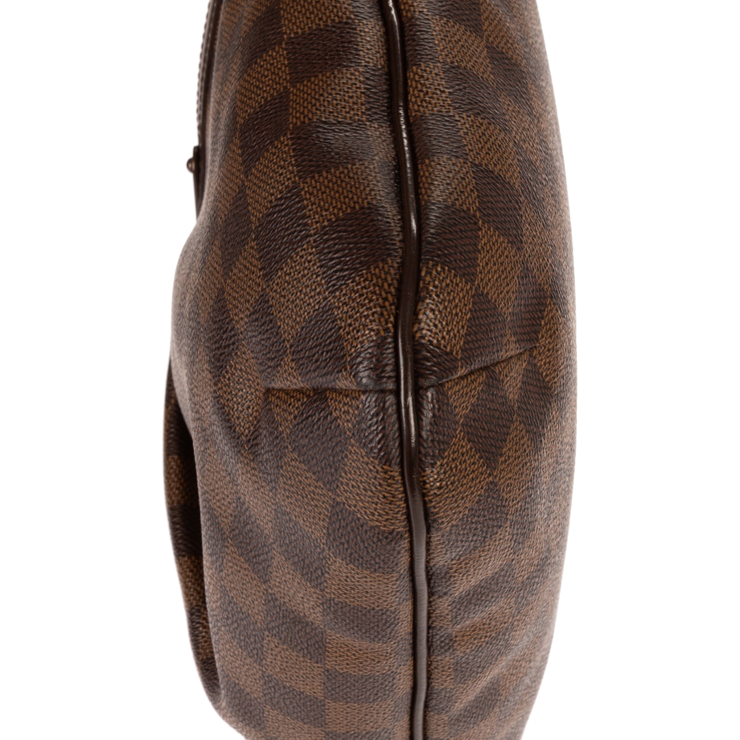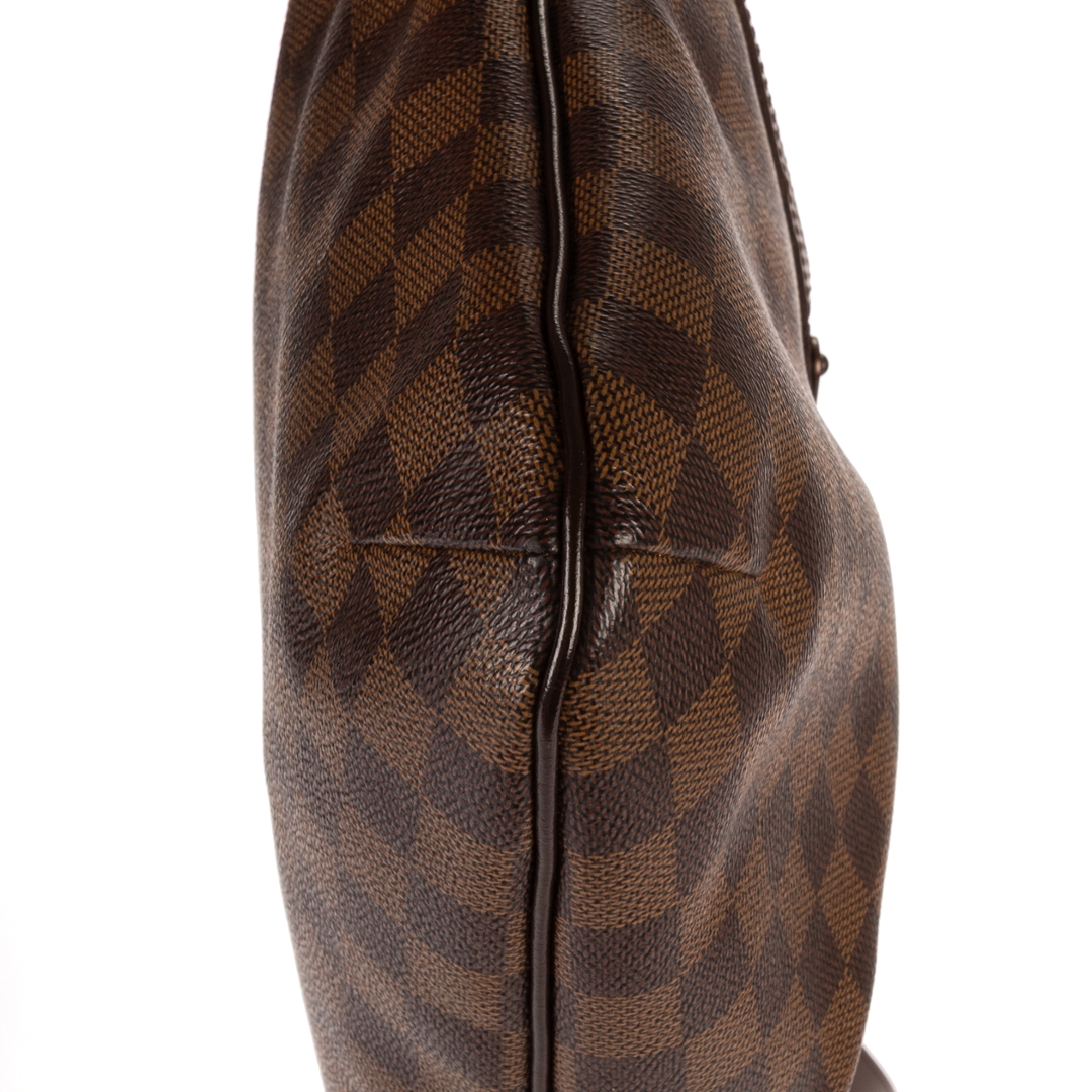 A vintage Louis Vuitton Bloomsbury bag showcases the perfect balance of elegance and practicality that defines the brand’s timeless appeal. Crafted from dark brown Damier Ebene coated canvas, it features the iconic checkerboard pattern accented with smooth leather trim and gleaming gold-tone hardware. The pleated front detail and discreet Louis Vuitton plaque add a sophisticated touch to its refined silhouette.
