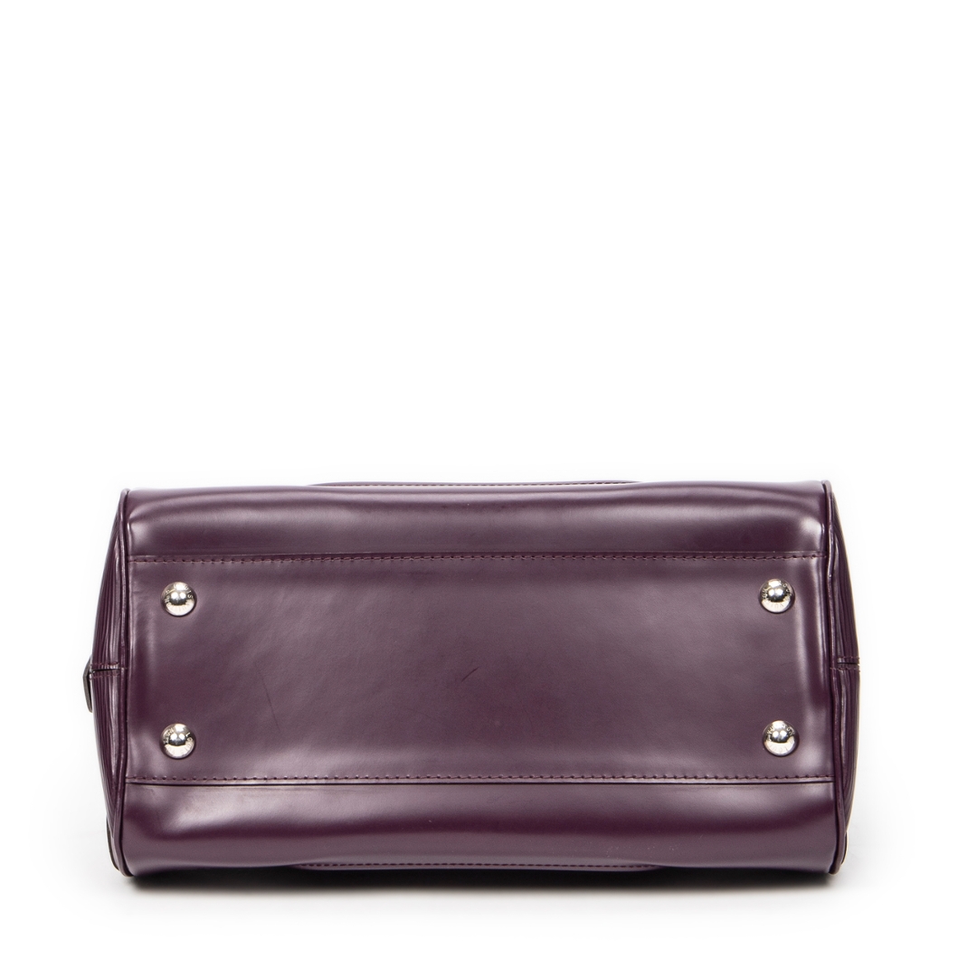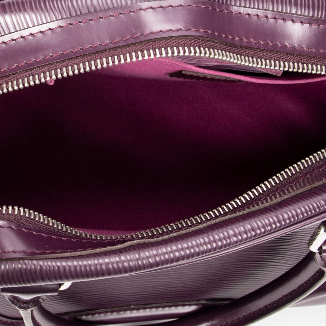 A vintage Louis Vuitton purple magenta calf leather Bowling Montaigne bag with a certificate of authenticity. Approximately 20cm height, 32cm width.