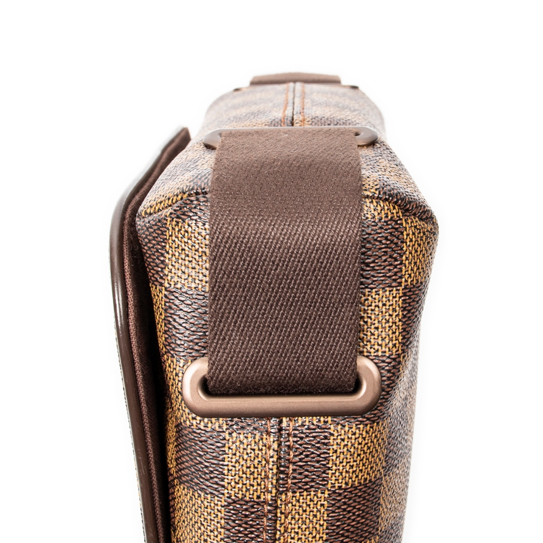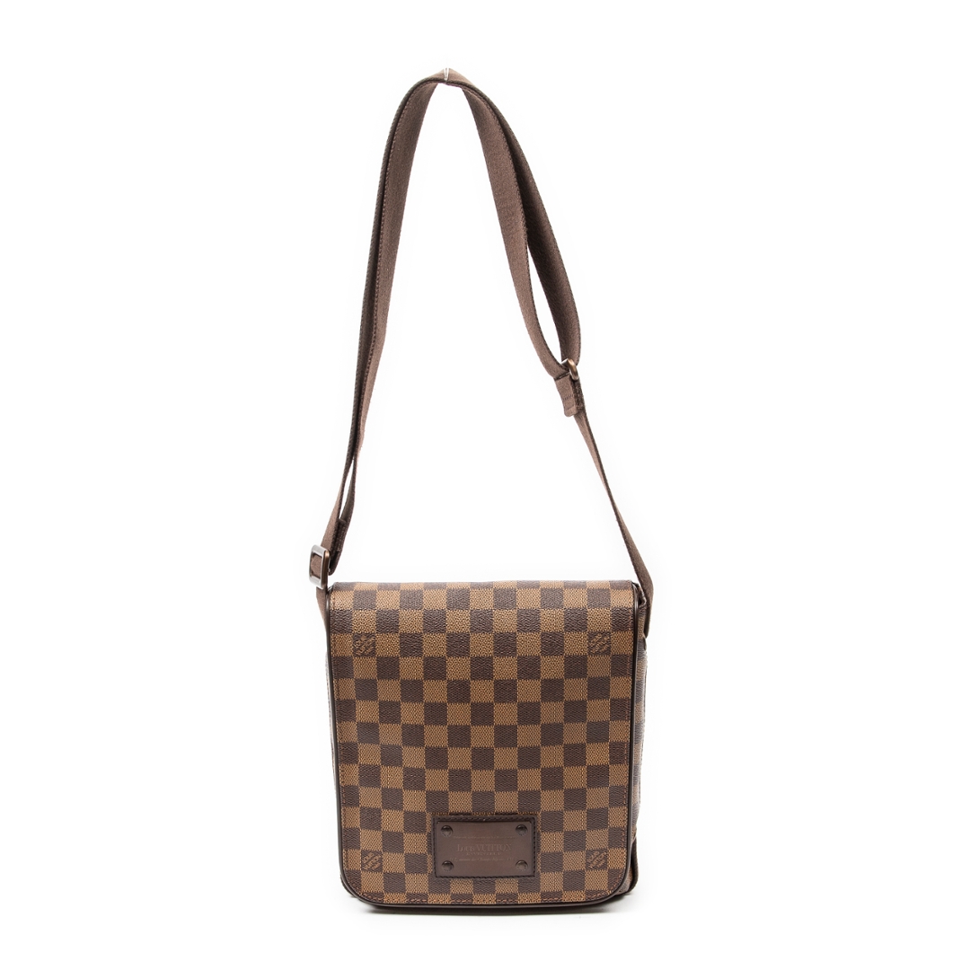 A vintage Louis Vuitton Brooklyn bag crafted in the signature brown coated canvas with the iconic Damier Ebene pattern, finished with coordinating dark leather trim and understated hardware. The structured, compact silhouette is complemented by a front flap design and subtle Louis Vuitton plaque, delivering a refined yet practical everyday style.