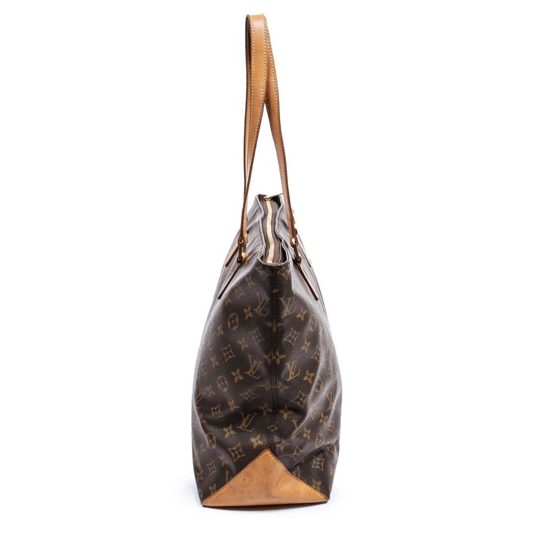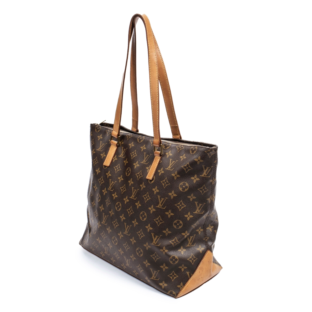 A vintage Louis Vuitton Cabas Mezzo bag crafted in the house’s iconic brown Monogram coated canvas, offering a relaxed and practical tote silhouette suited to everyday use. The soft rectangular shape is complemented by natural leather shoulder straps, subtle gold-tone hardware, and a secure zip-top closure. Measuring approximately 32cm in height and 35cm in width, it provides a spacious and well-balanced profile ideal for carrying daily essentials.