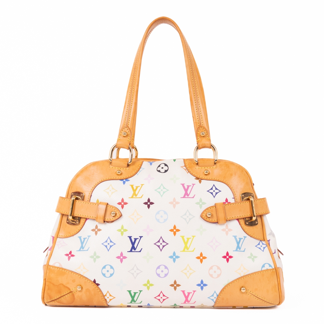 A vintage Louis Vuitton multicoloured coated canvas Claudia bag with a certificate of authenticity. Approximately 23cm height, 36cm width.