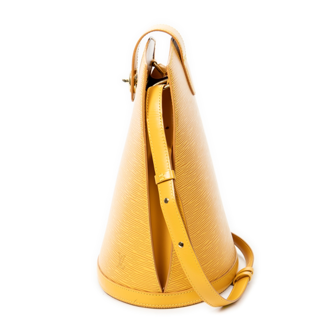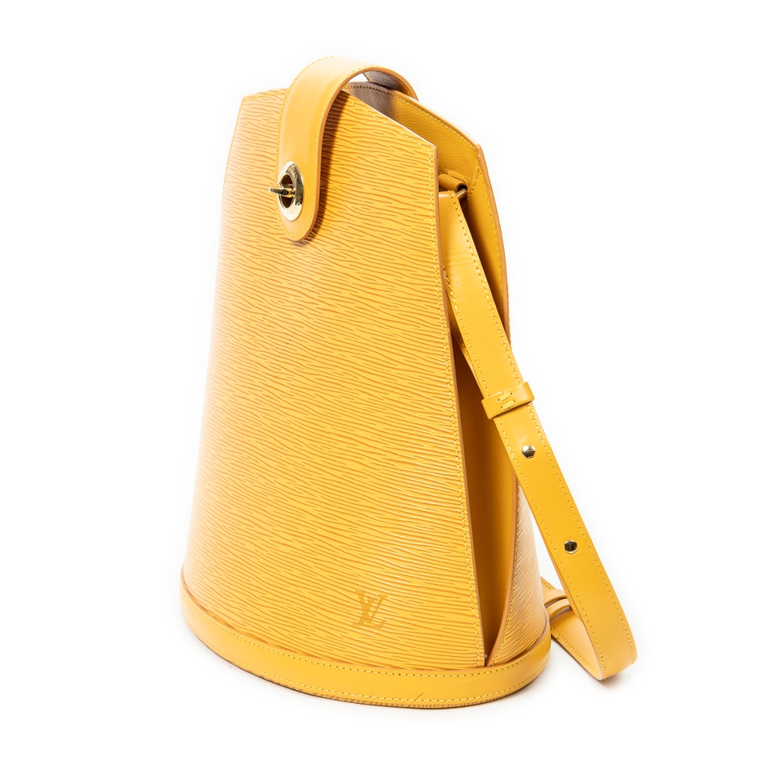 A vintage Louis Vuitton yellow calf leather Cluny bag with a certificate of authenticity, Approximately 30cm height, 26cm width.