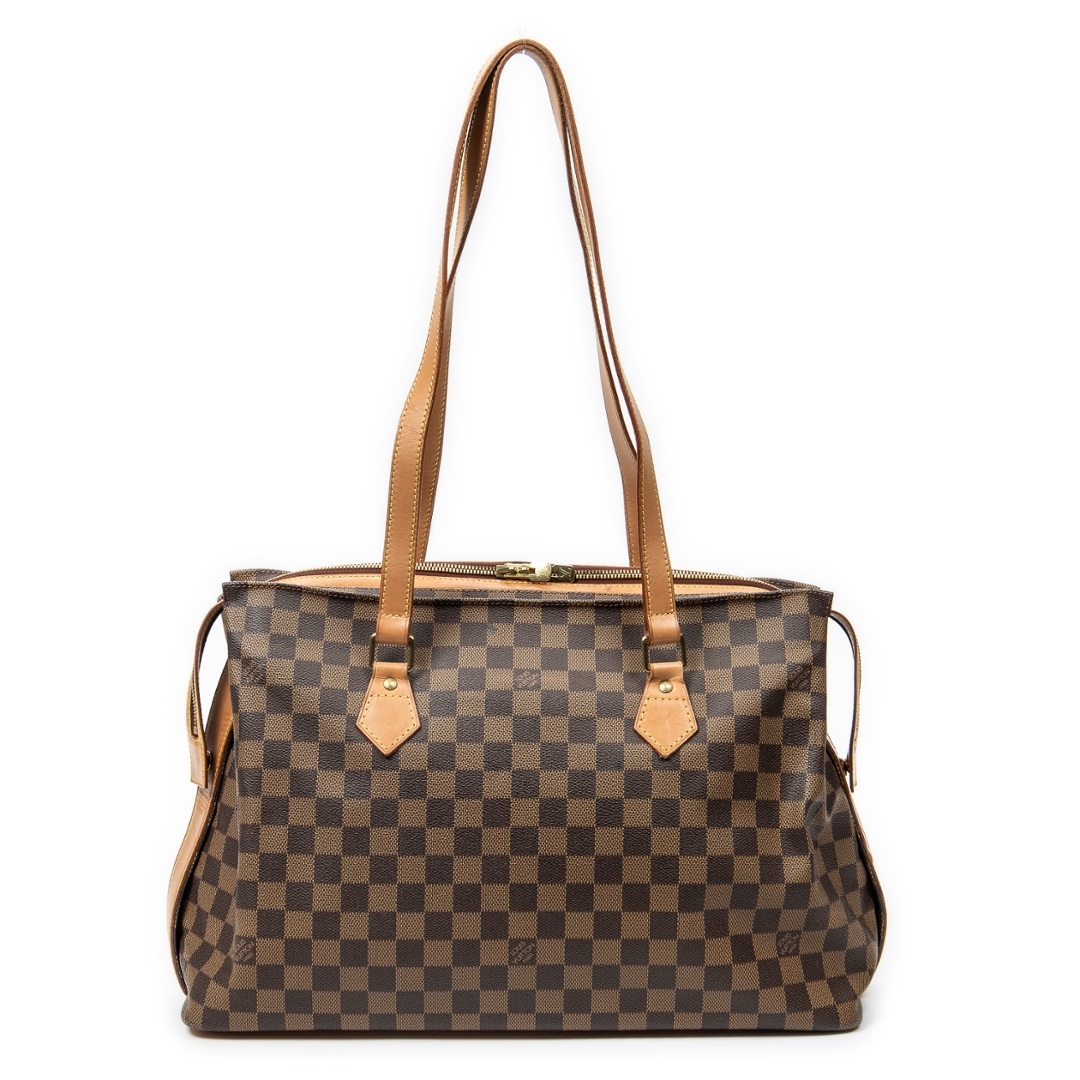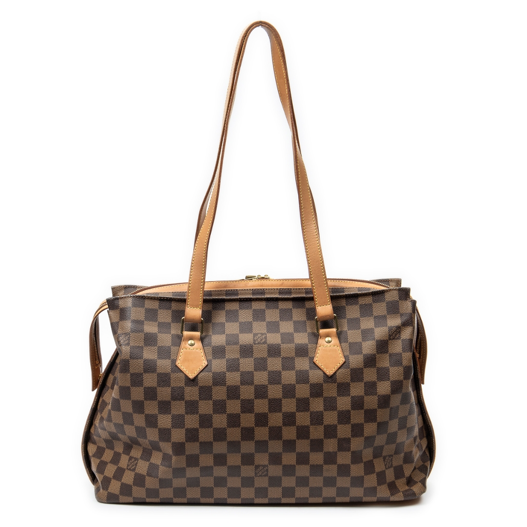 A vintage Louis Vuitton damier coated canvas Columbine Centenaire bag with a certificate of authenticity. Approximately 28cm height, 41cm width.