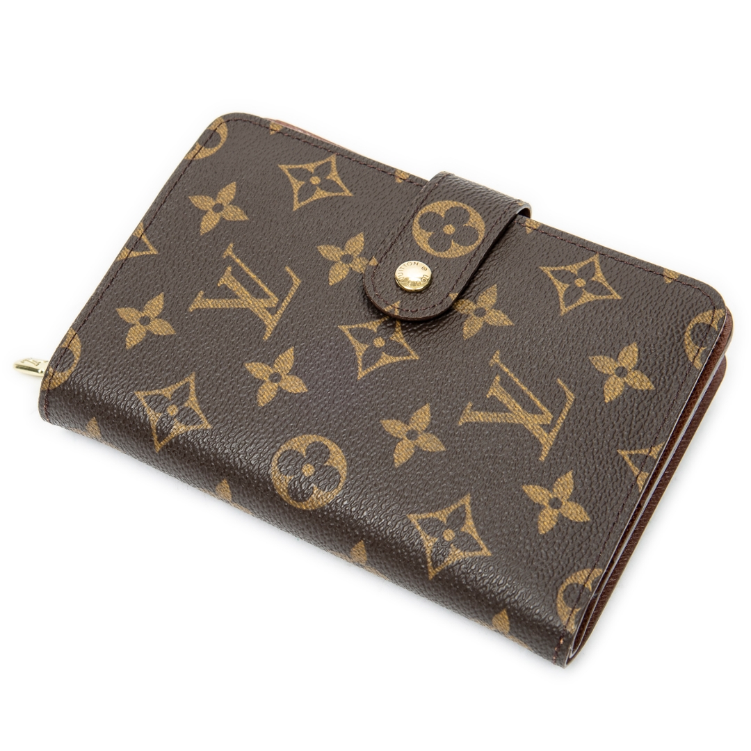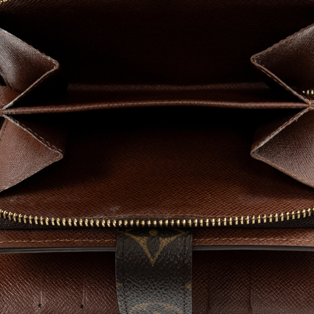 A vintage Louis Vuitton Compact Zip Wallet crafted in the iconic brown Monogram coated canvas, offering a refined and highly practical accessory for everyday organisation. The compact silhouette is both elegant and functional, featuring a secure press-stud fastening that opens to a well-arranged interior. Measuring approximately 15cm in height and 11cm in width, it provides a convenient size for daily use while maintaining a classic Louis Vuitton aesthetic.