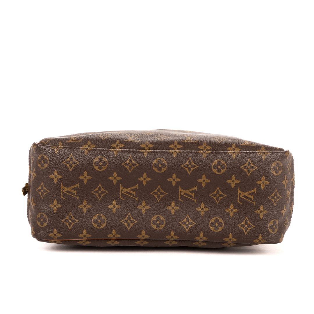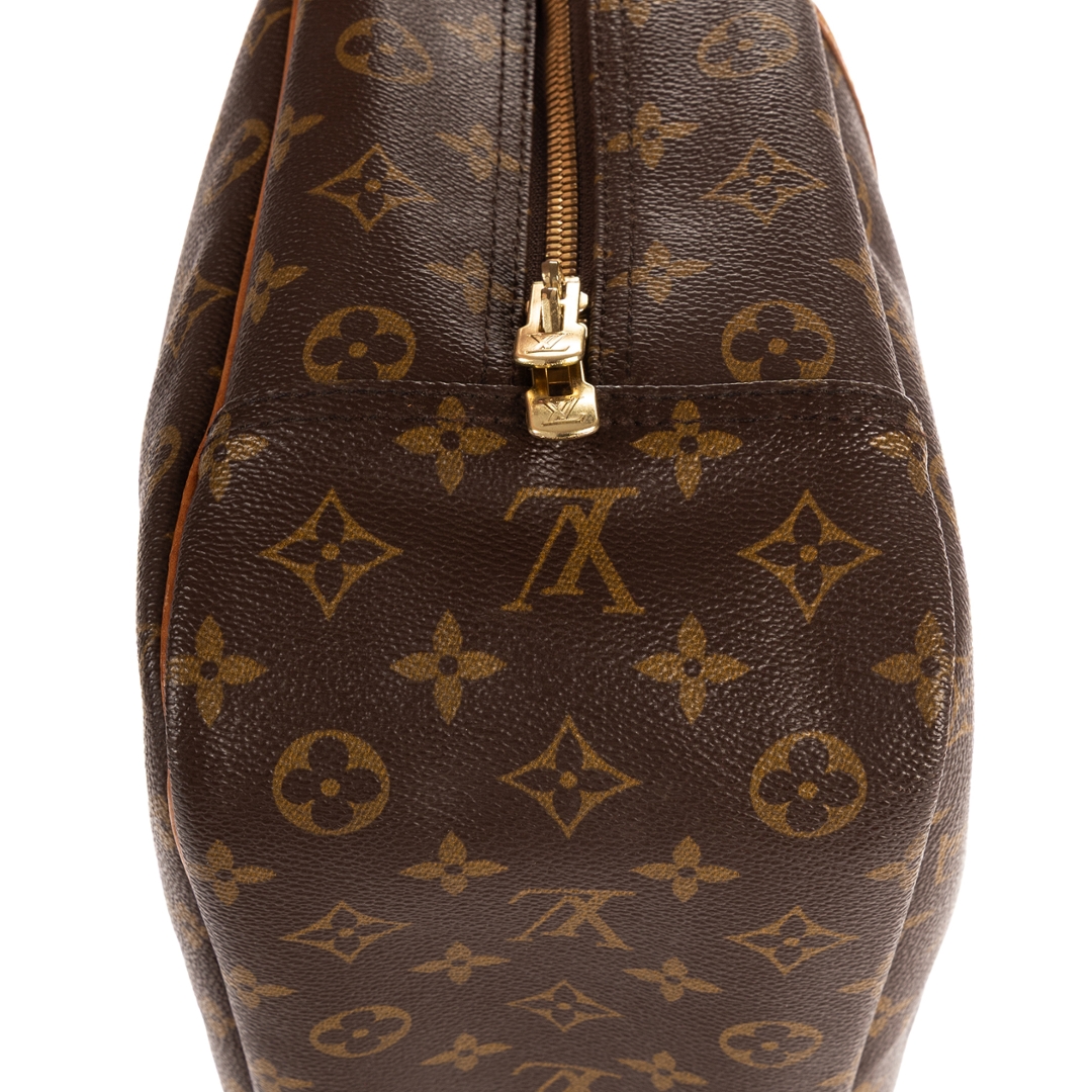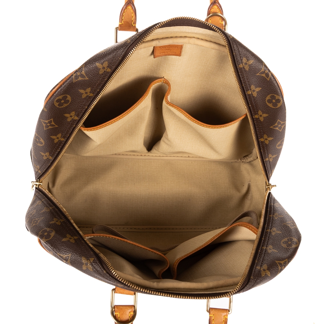 The durable coated canvas exterior is complemented by smooth leather detailing and gold-tone hardware, creating a timeless and instantly recognisable finish. A secure zip-top closure opens to a spacious interior designed for organised storage, while the exterior slip pocket allows quick access to frequently used items. The Deauville remains a staple Louis Vuitton design, valued for its structured form and reliable functionality.