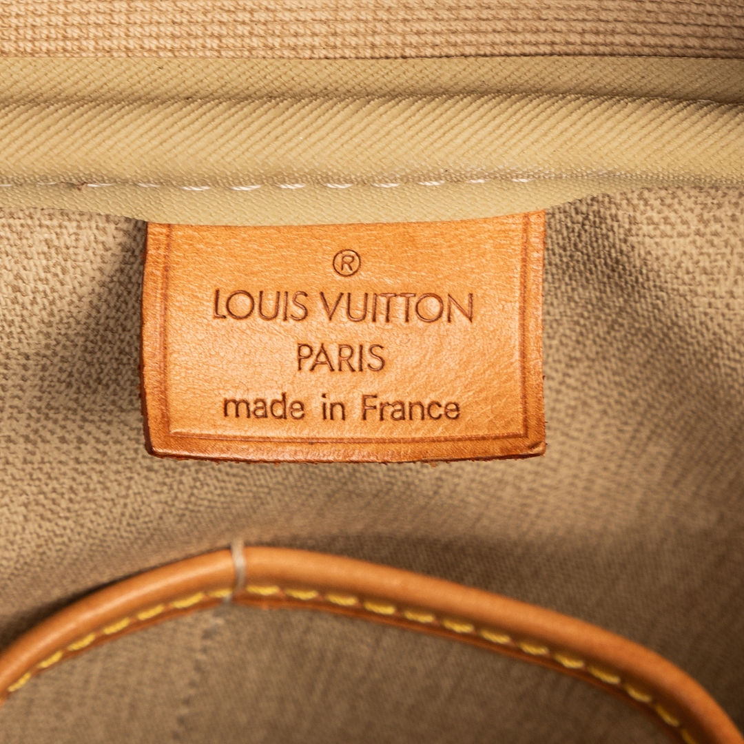 A vintage Louis Vuitton Brown Coated Canvas Deauville bag with a certificate of authenticity. Approximately 25cm height, 34cm width.