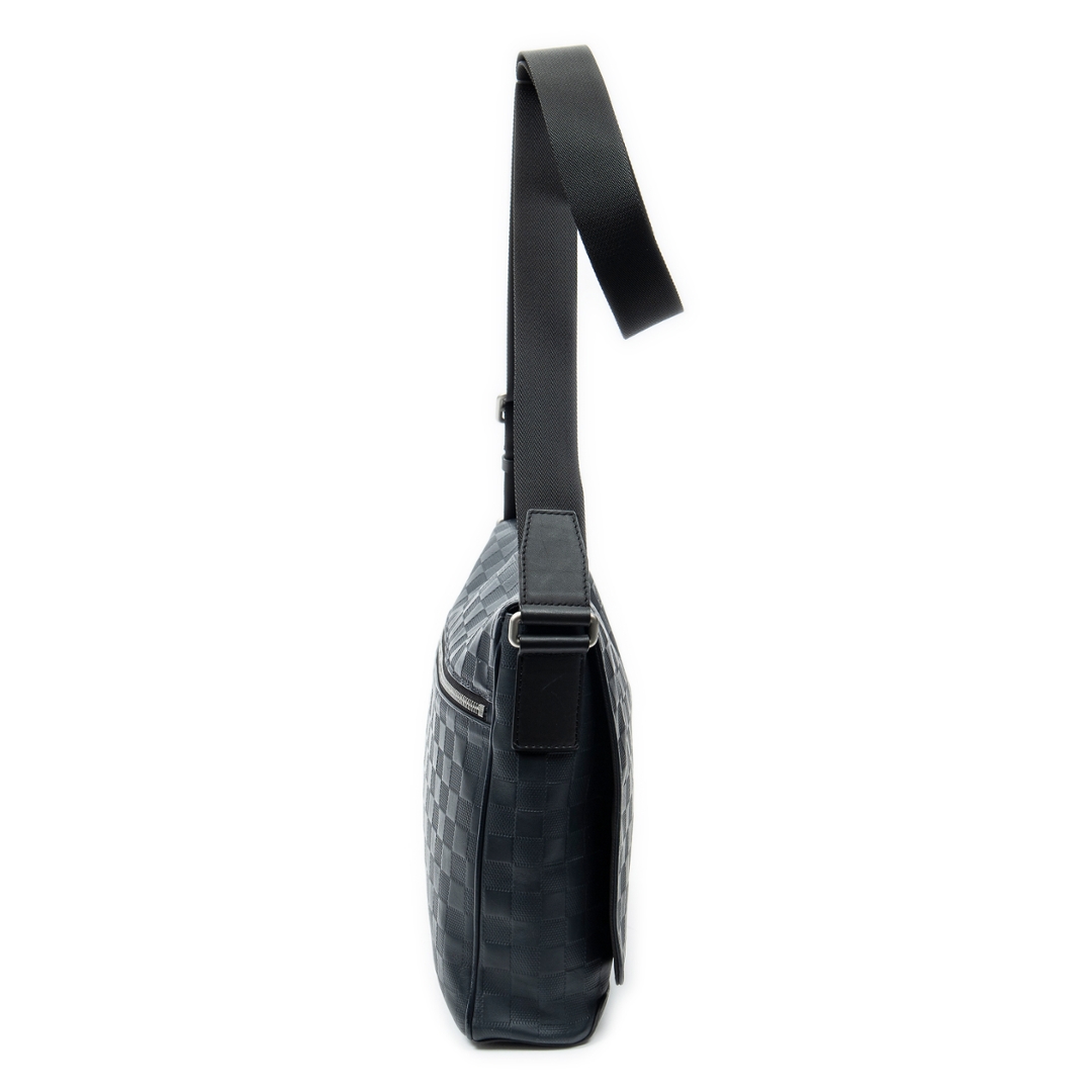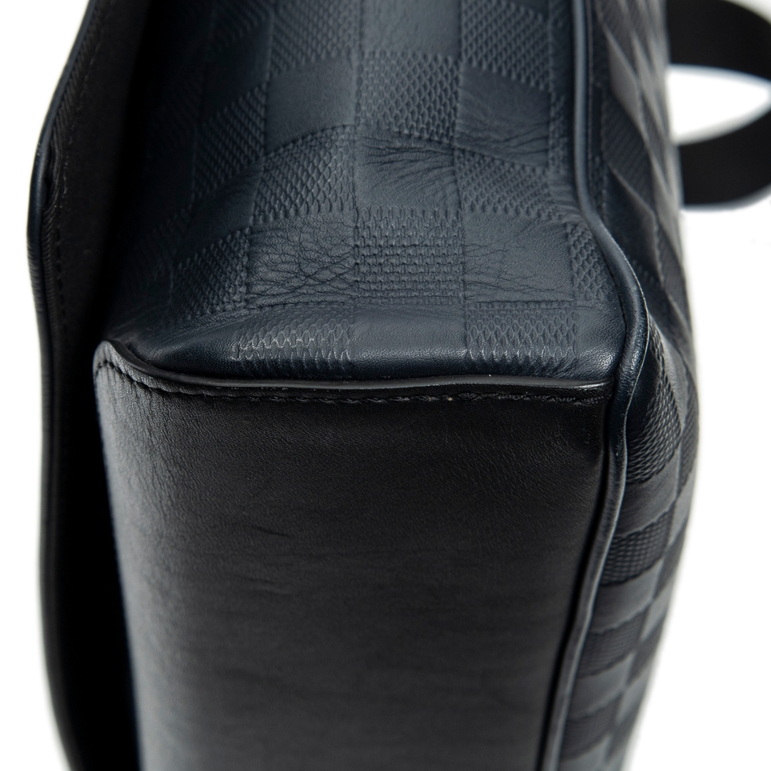 A vintage Louis Vuitton navy calf leather District bag with a certificate of authenticity. Approximately 27cm height, 34cm width.