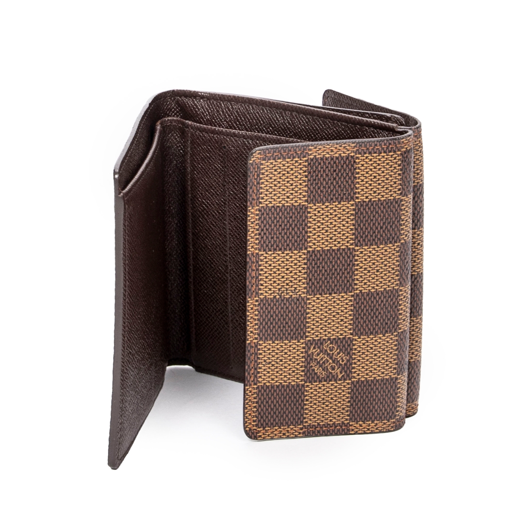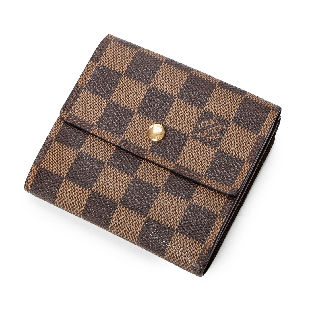 A vintage Louis Vuitton Elise wallet crafted in the classic brown Damier coated canvas, offering a compact and highly practical design. This refined piece showcases the house’s iconic checkerboard pattern, delivering a timeless aesthetic in a neatly proportioned silhouette. Measuring approximately 10cm in height and 11cm in width, it is perfectly sized for everyday convenience.