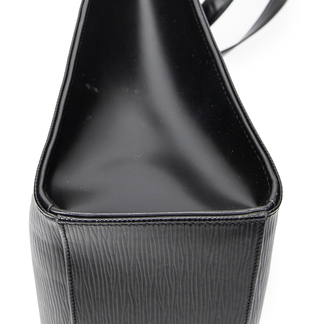 A vintage Louis Vuitton black calf leather Gemeaux bag with a certificate of authenticity. Approximately 30cm height, 38cm width.