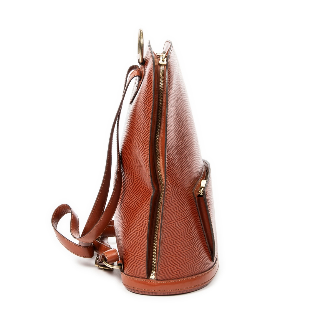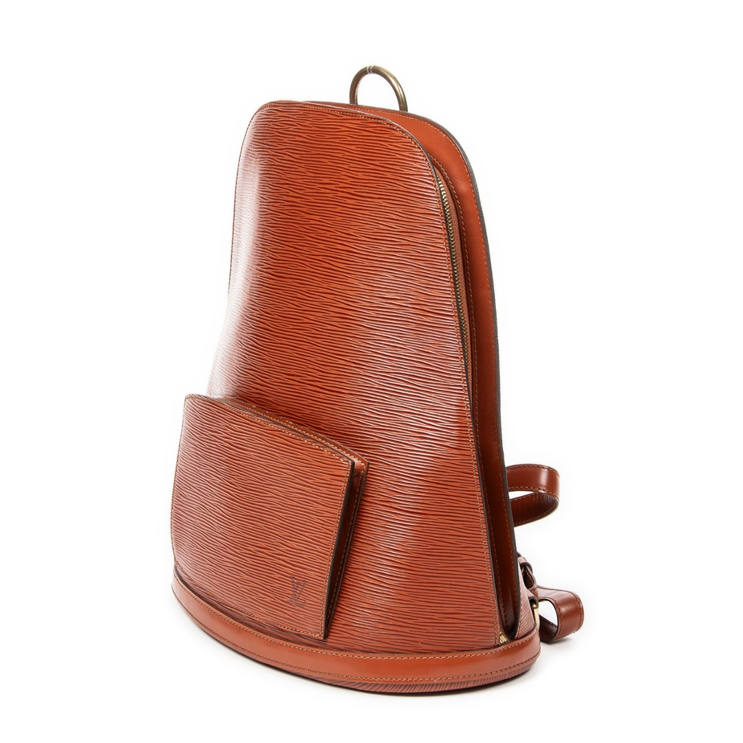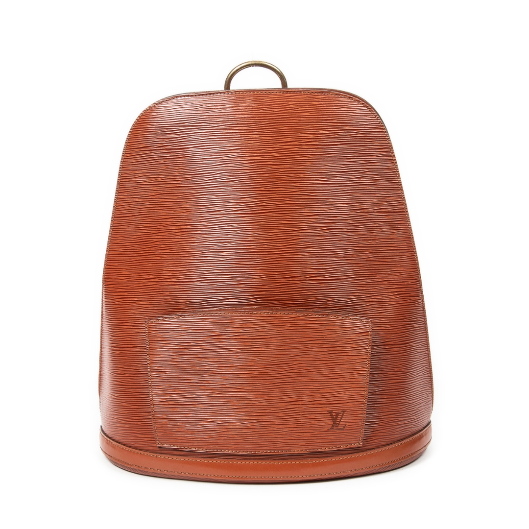A vintage Louis Vuitton tan calf leather Gobelins bag with a certificate of authenticity. Approximately 34cm height, 30cm width.