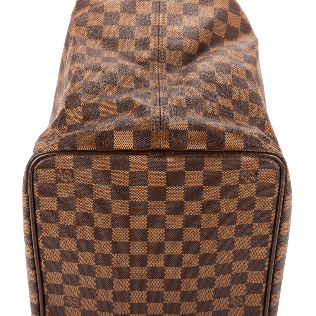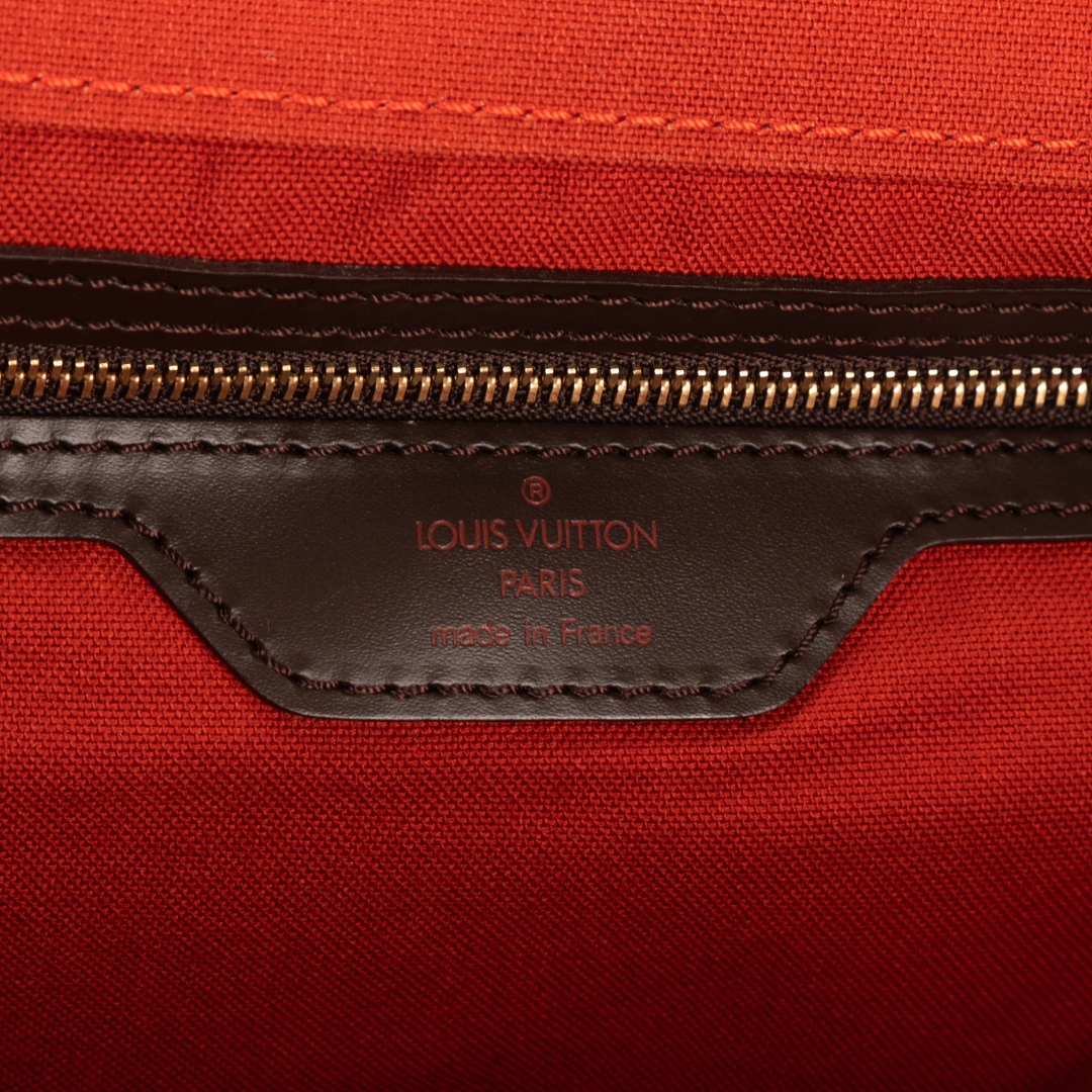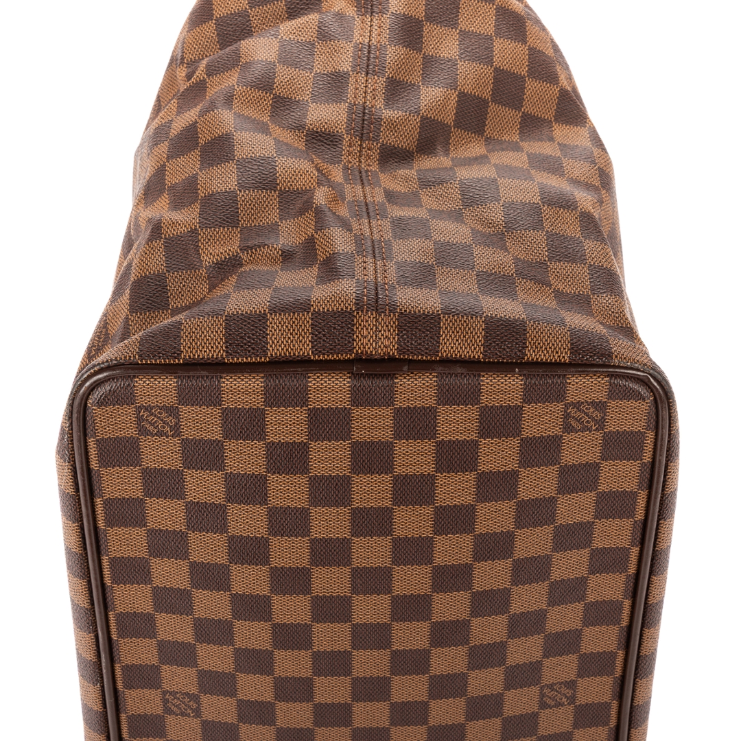 A vintage Louis Vuitton Greenwich bag crafted in the iconic brown Damier Ebene coated canvas, presenting a timeless and highly recognisable aesthetic. The structured silhouette is enhanced by rich leather trim, rolled top handles, and refined gold-tone hardware, creating a sophisticated piece that reflects the enduring appeal of Louis Vuitton’s travel-inspired heritage.