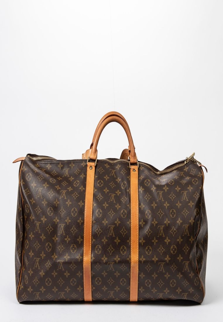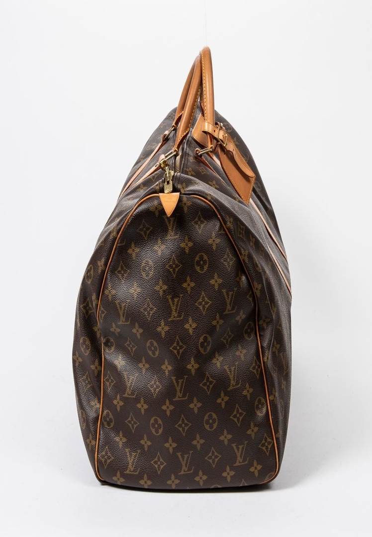 A vintage brown monogram canvas Louis Vuitton Keepall with a certificate of authenticity, Approximately 26cm height, 60cm width.
