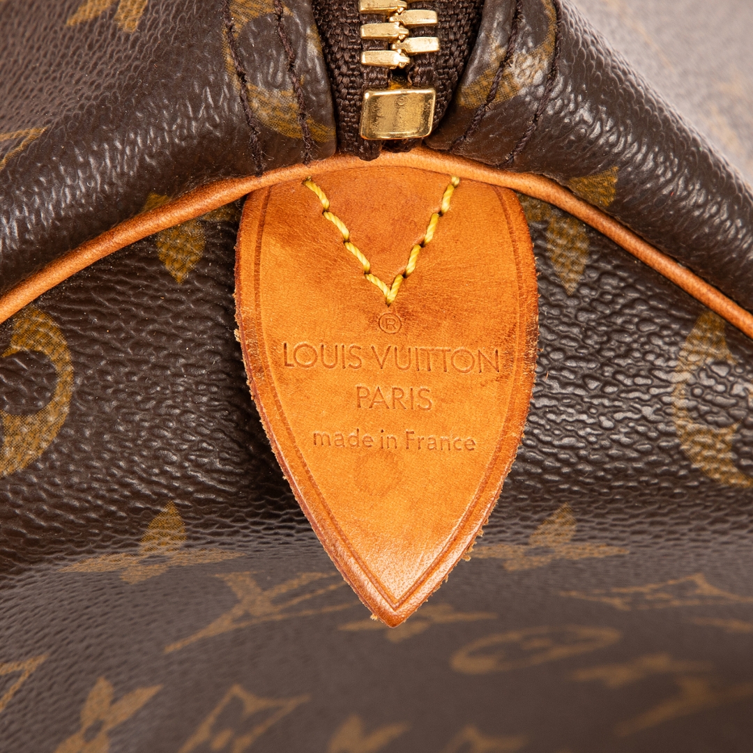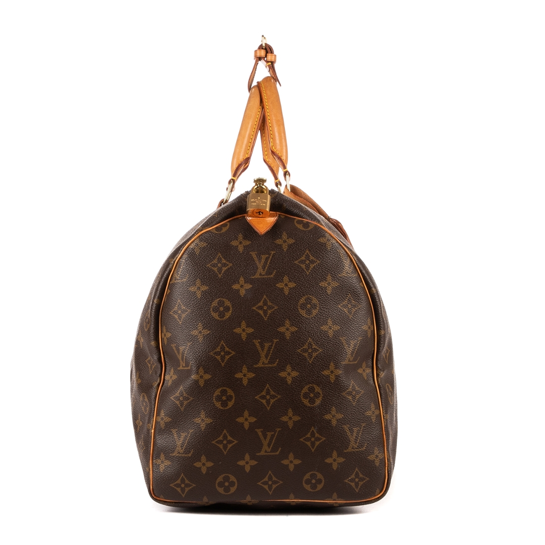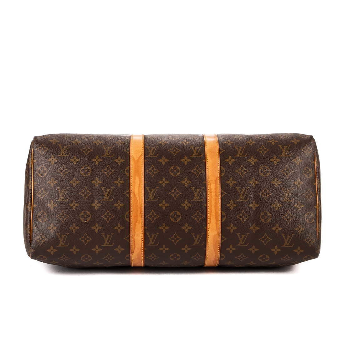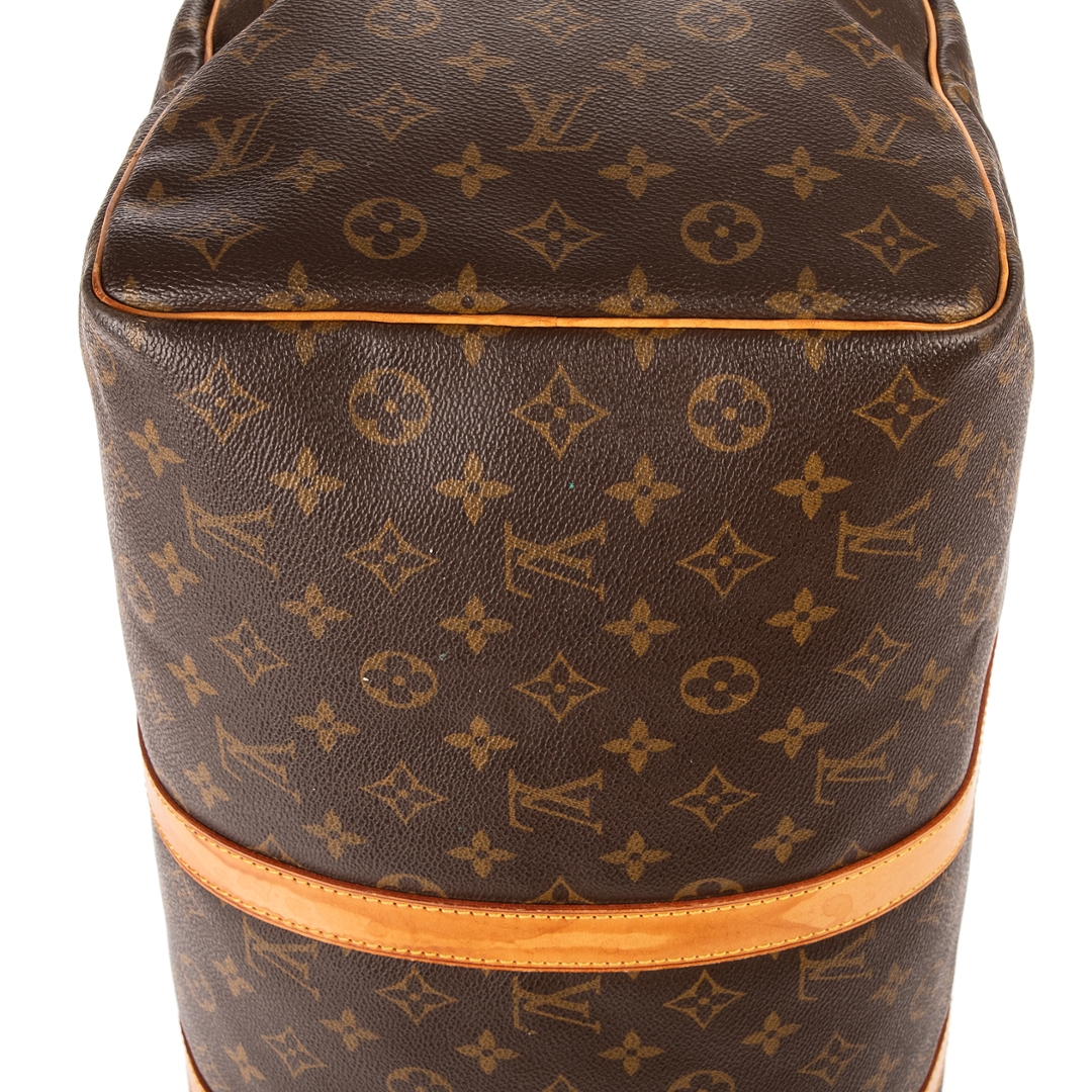 A vintage brown monogram canvas Louis Vuitton Keepall with a certificate of authenticity, Approximately 26cm height, 50cm width.